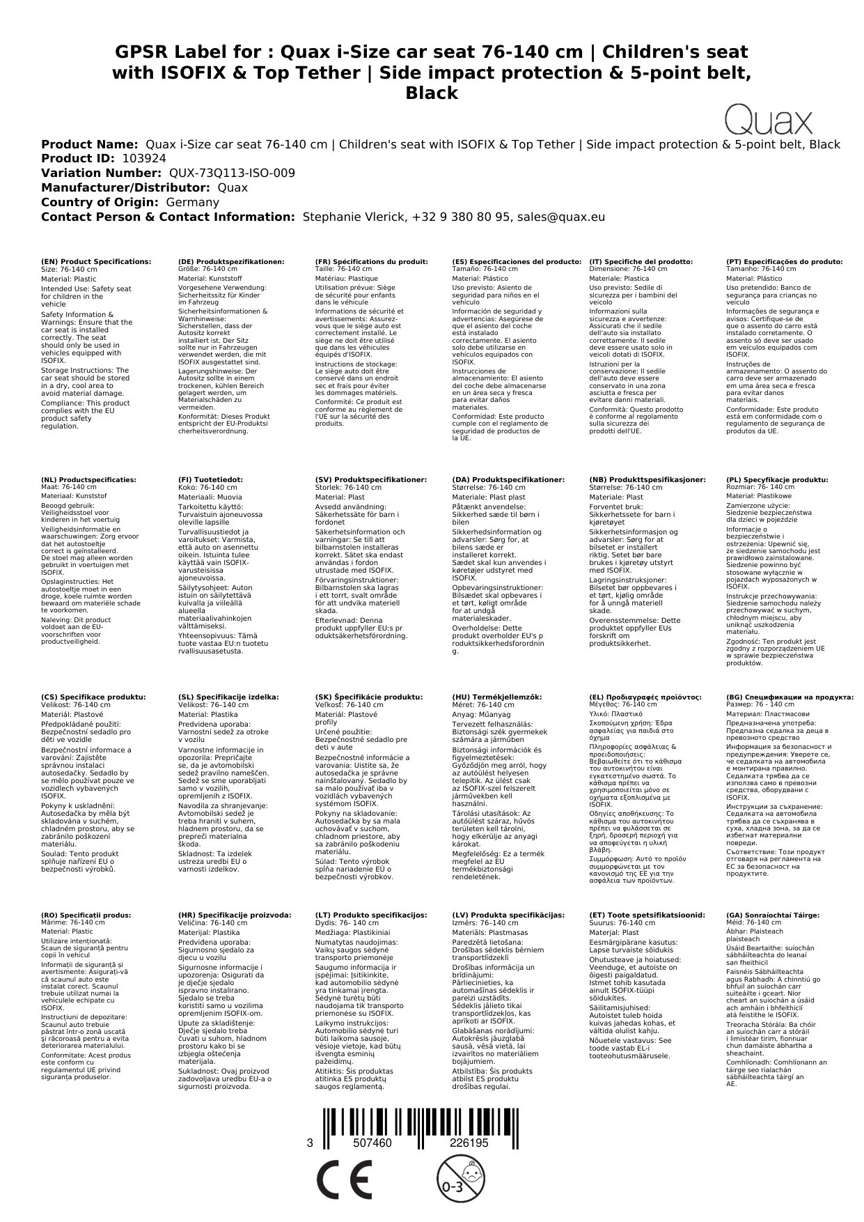 - Der Quax i-Size Autositz ist von höchster Qualität und entspricht allen EU-Sicherheitsstandards.