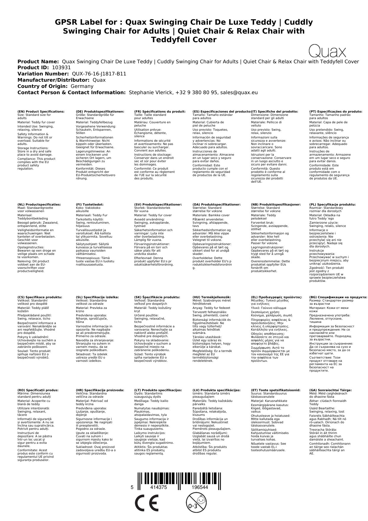 Stellen Sie eine Frage, um mehr über das Produkt zu erfahrenQuax Schaukelstuhl De Luxe Teddy - Der ultimative Schaukelsessel für Erwachsene