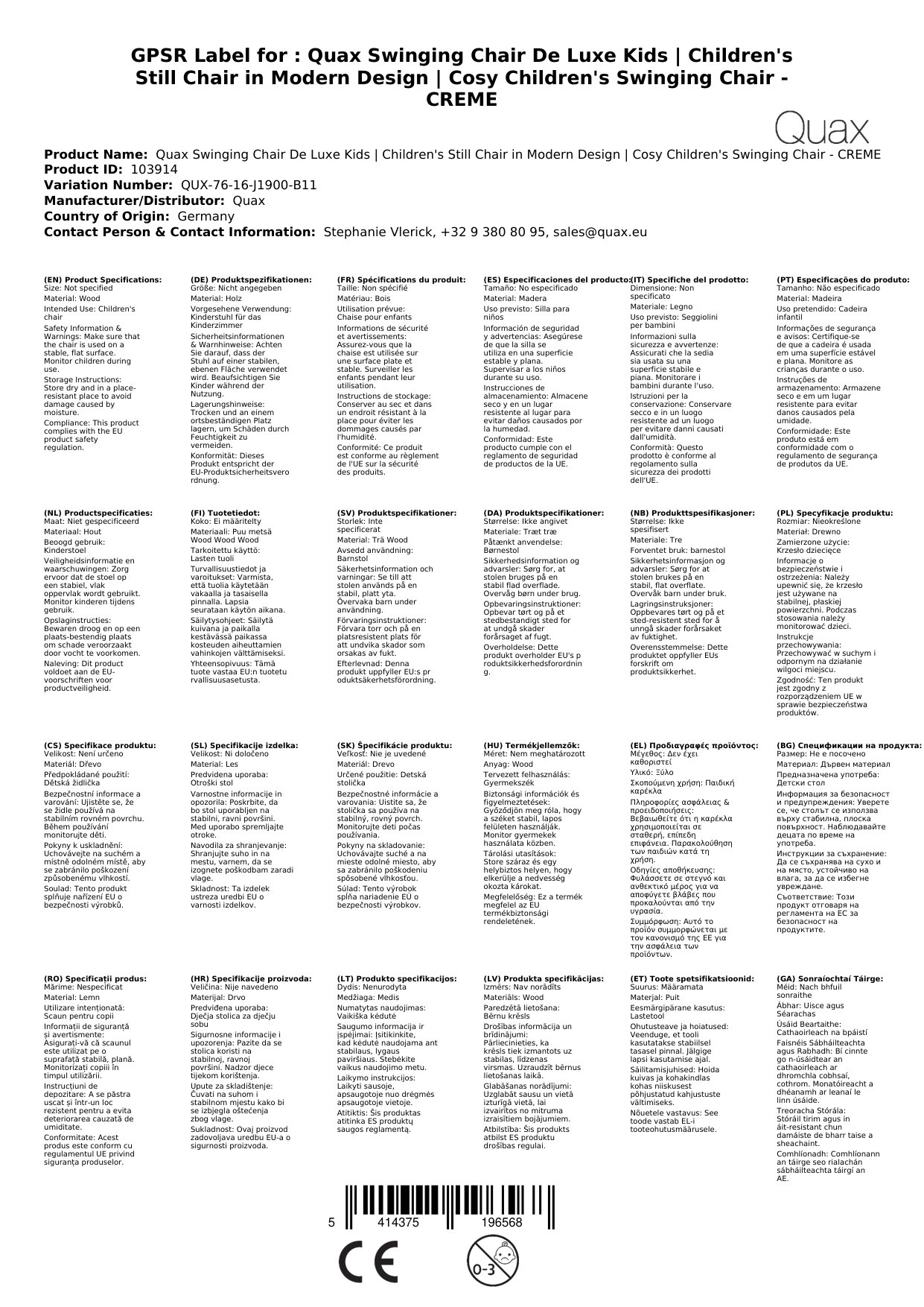Stellen Sie eine Frage, um mehr über das Produkt zu erfahrenQuax Schaukelstuhl De Luxe Kids | Kinder Stillsessel im modernen Design | Gemütlicher Kinderschaukelstuhl für Kinderzimmer - CREME