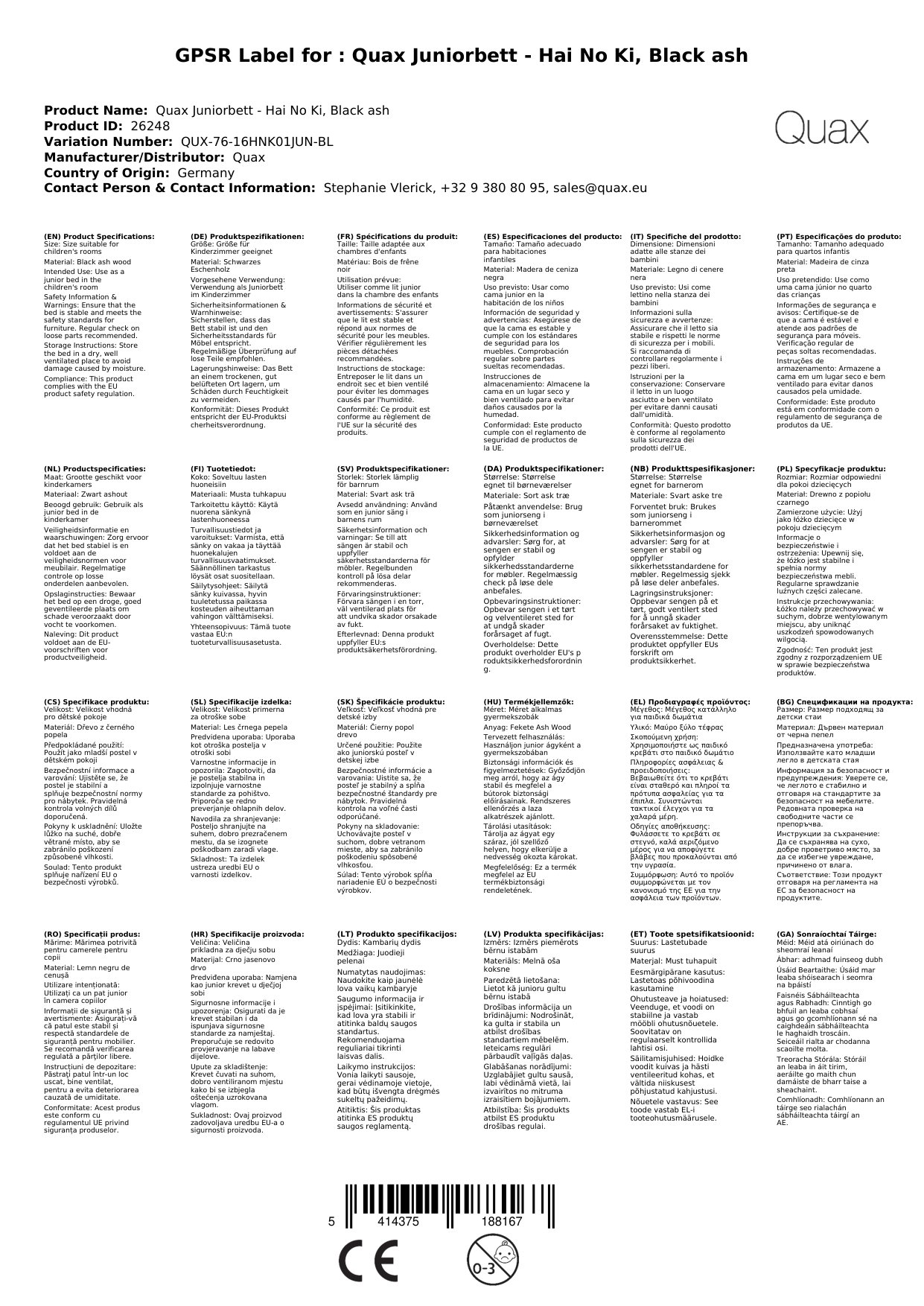 Stellen Sie eine Frage, um mehr über das Produkt zu erfahrenQuax Juniorbett - Hai No Ki, Schwarzes Eschenholz