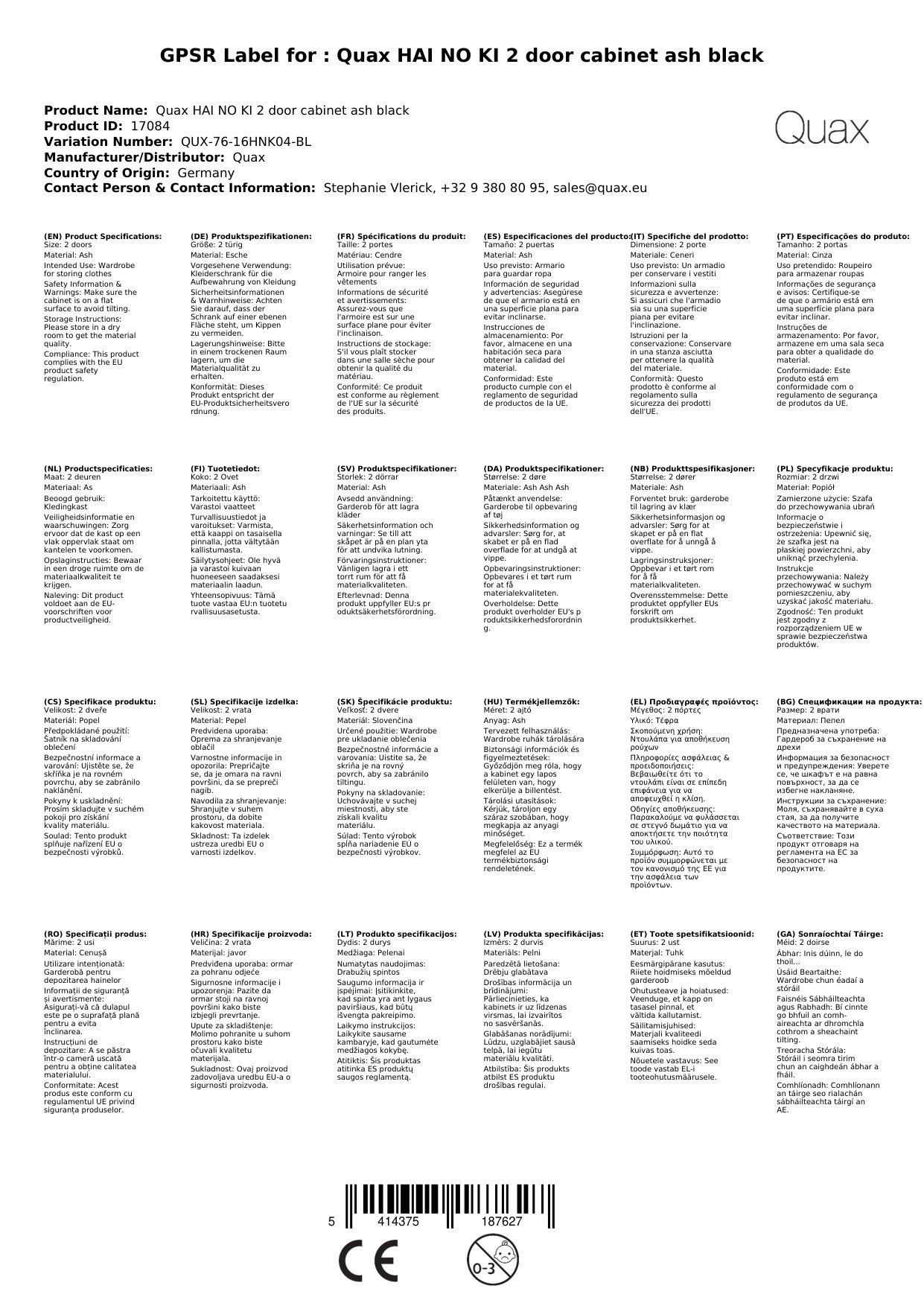 Quax HAI NO KI 2 türiger Schrank Esche schwarz