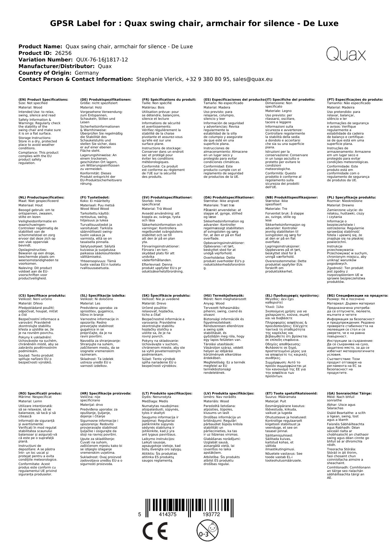 Stellen Sie eine Frage, um mehr über das Produkt zu erfahrenQuax Schaukelstuhl, Sessel zum Stillen - De Luxe