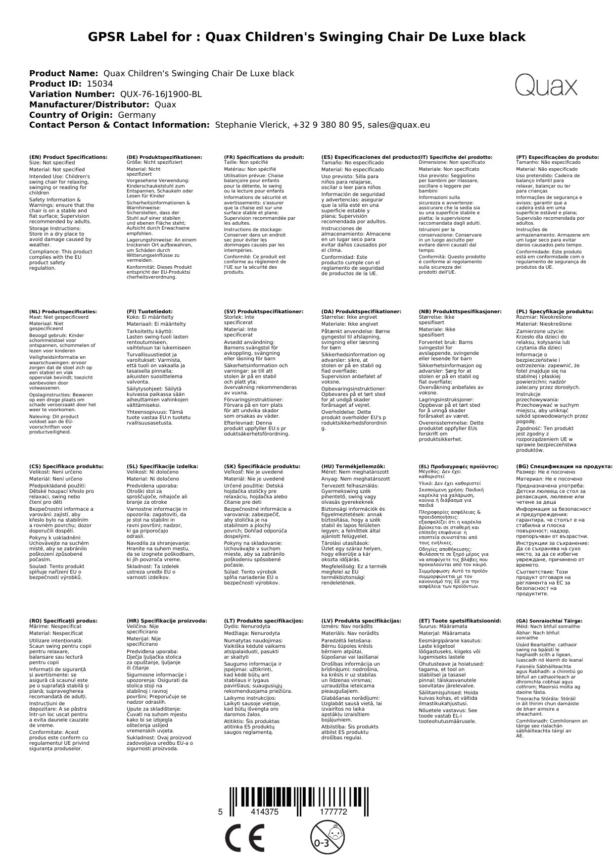 Quax Kinderschaukelstuhl De Luxe schwarz