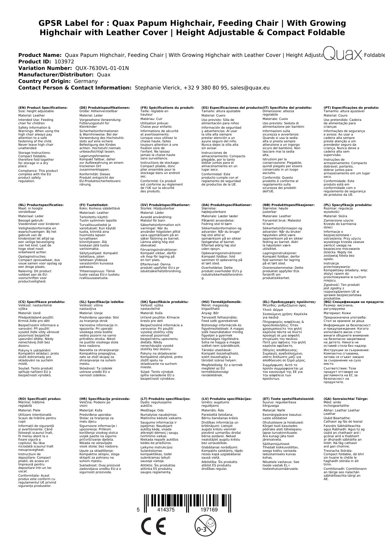 Stellen Sie eine Frage, um mehr über das Produkt zu erfahrenQuax Papum Hochstuhl – Der separat im Lieferumfang erhältliche Mitwachsender Kinderhochstuhl mit Lederbezug