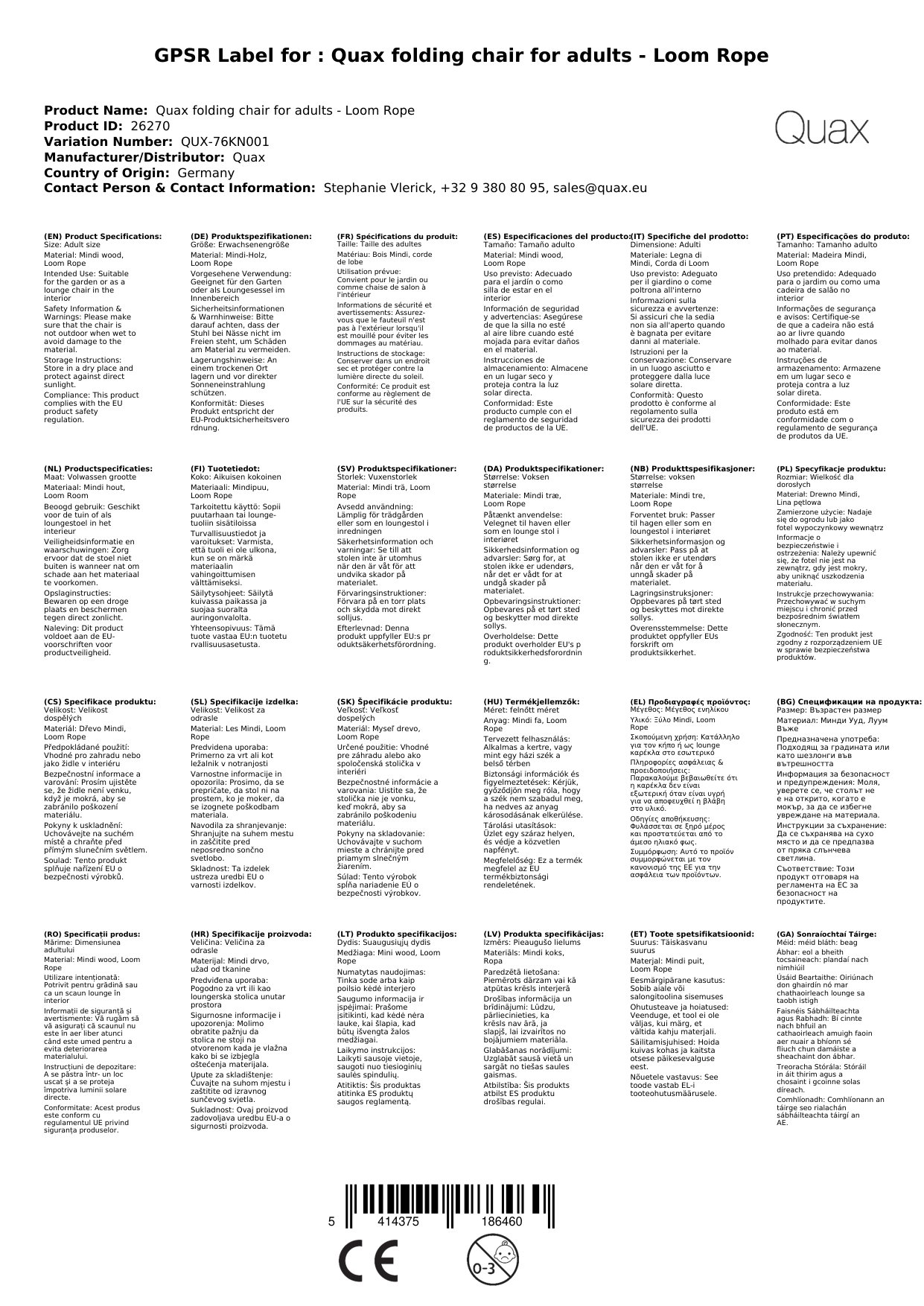 Stellen Sie eine Frage, um mehr über das Produkt zu erfahrenQuax Klappstuhl für Erwachsene - Loom Rope WOW
