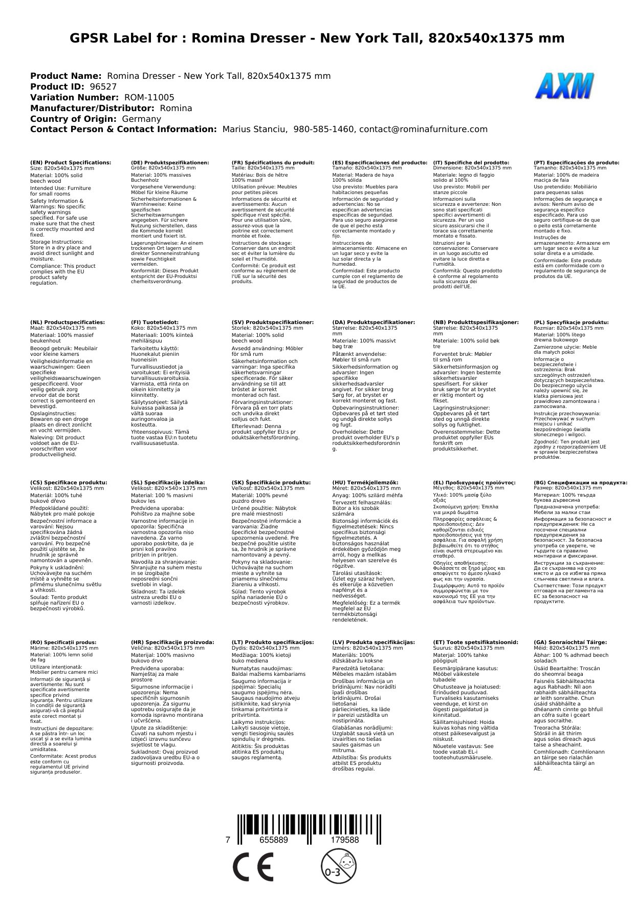 Stellen Sie eine Frage, um mehr über das Produkt zu erfahrenRomina Kommode - New York Tall, 820x540x1375 mm