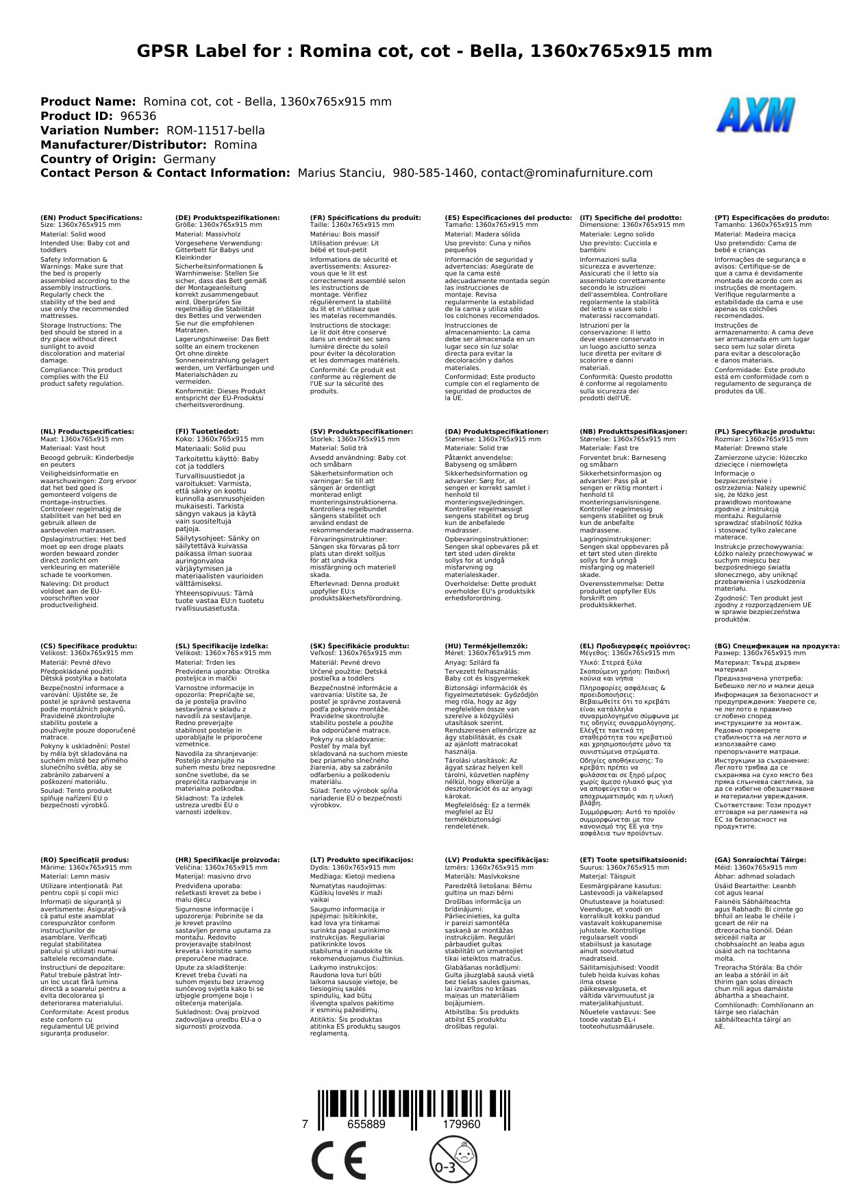 Stellen Sie eine Frage, um mehr über das Produkt zu erfahrenRomina Babybett, Gitterbett, Kinderbett - Bella, 1360x765x915 mm