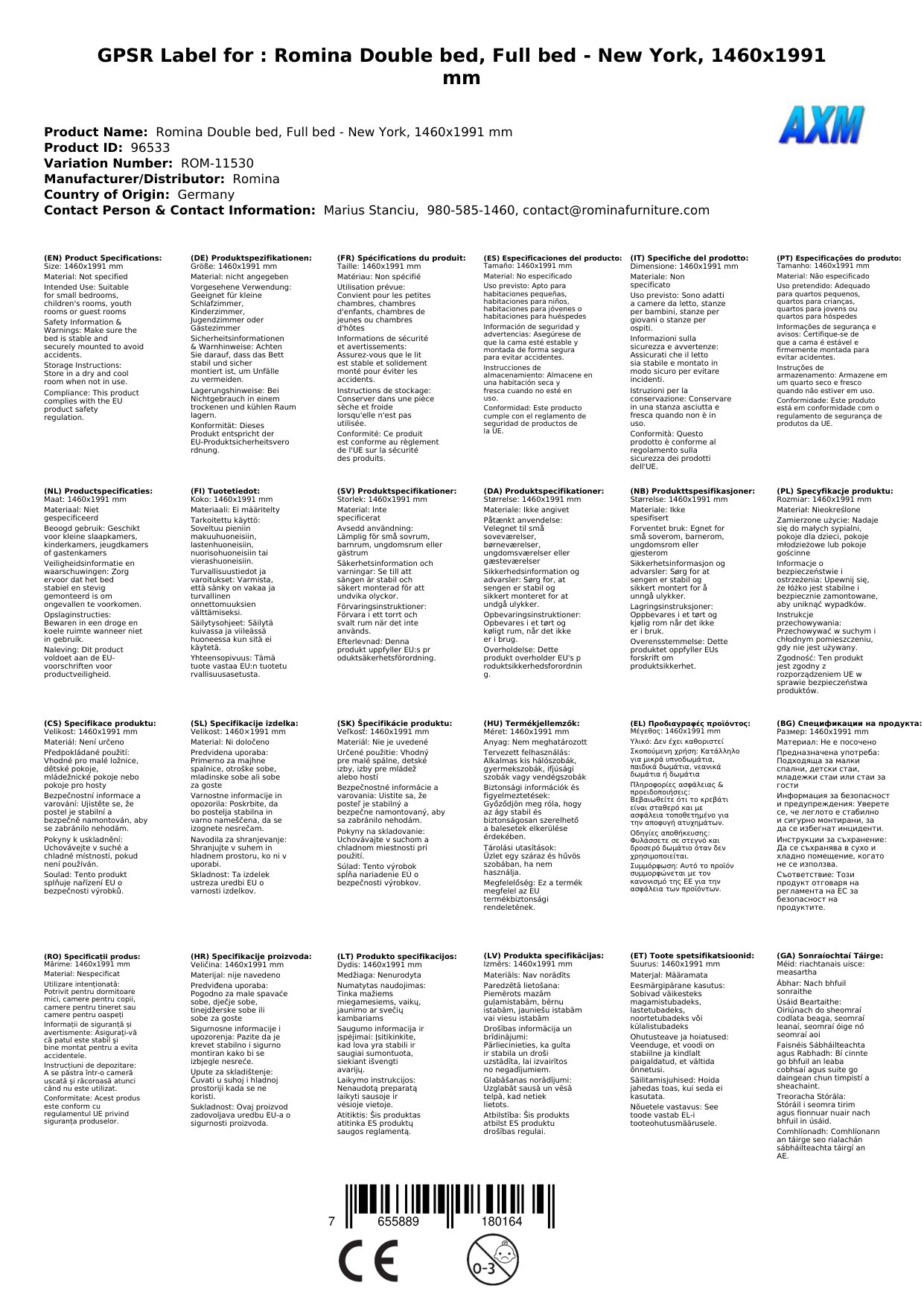 Stellen Sie eine Frage, um mehr über das Produkt zu erfahrenRomina Doppelbett, Vollbett - New York, 1460x1991 mm