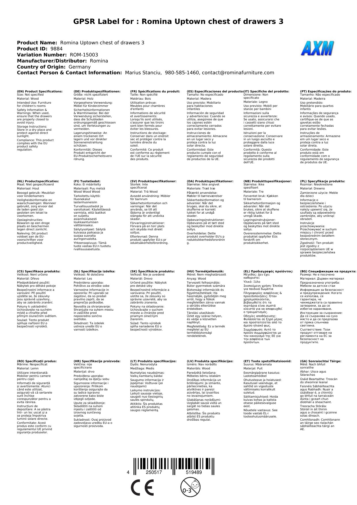 Das Möbel wird von Ihnen montiert und zusammengebaut. Eine ausführliche Aufbauanleitung liegt bei.