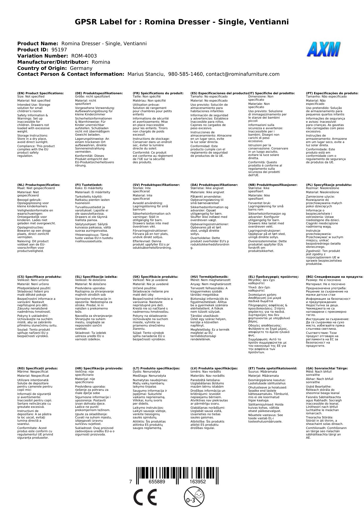 Die Romina Kommode - Einzelne, Ventianni ist die ideale Aufbewahrungslösung für kleine Kinderzimmer. Mit drei großen Schubladen bietet sie großzügigen Platz für Kleidung und Accessoires. Sogar ein Wickeltablett oder ein Spiegel können auf der Oberseite untergebracht werden, um den Komfort Ihres Kindes zu erhöhen, während es wächst.