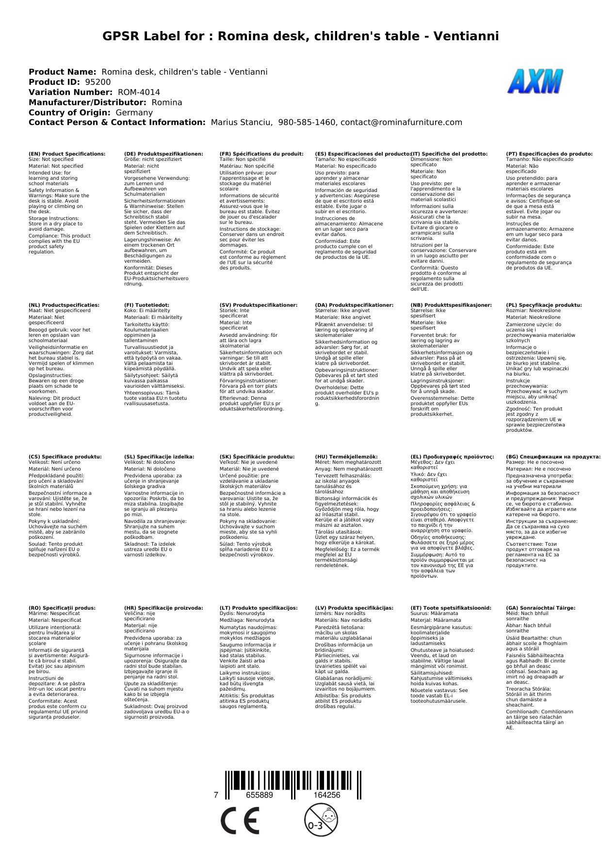 Alle Romina-Produkte erfüllen US-Standards und CPSC-Anforderungen.