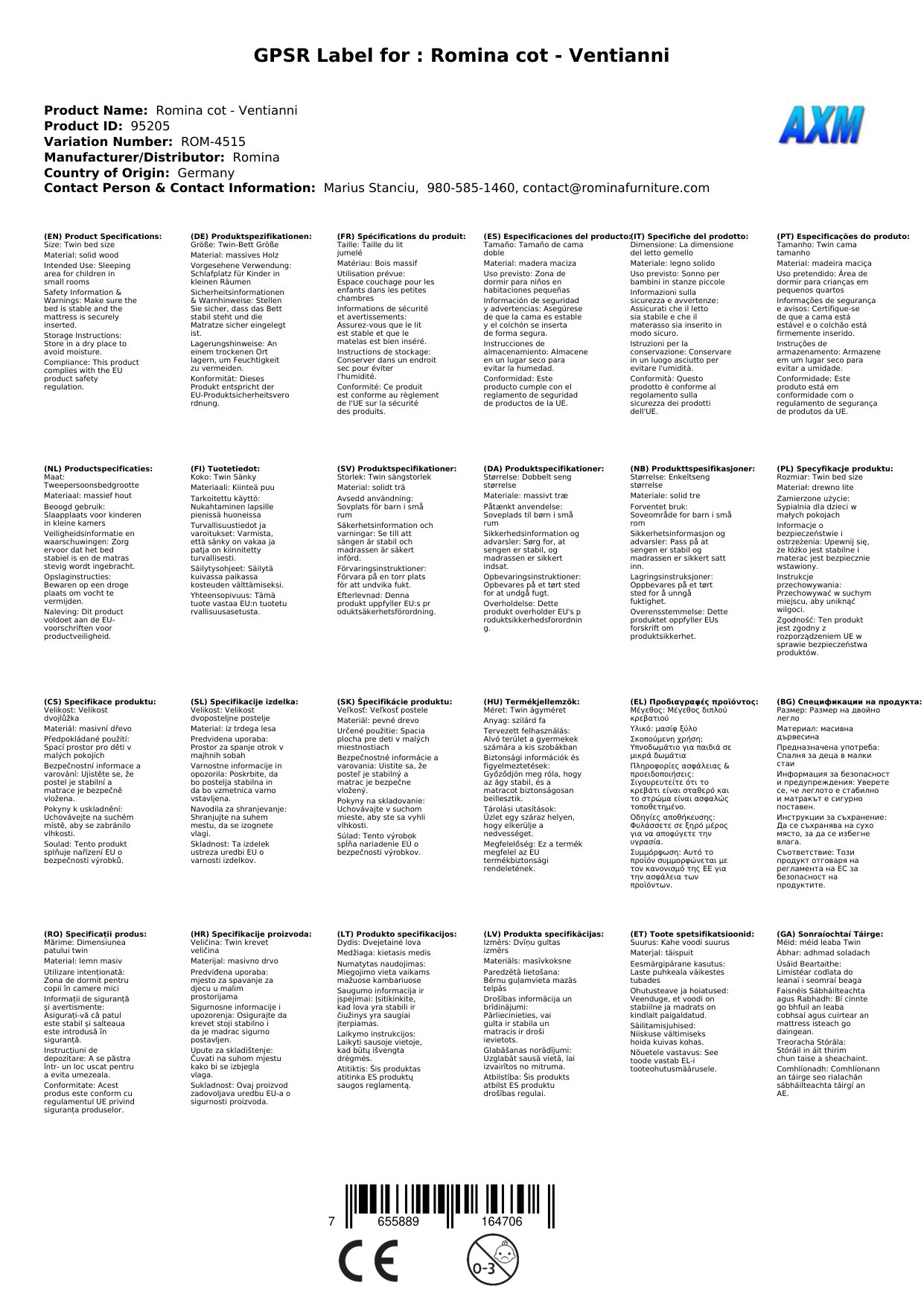 - Alle Romina-Produkte erfüllen US-Standards und CPSC-Anforderungen