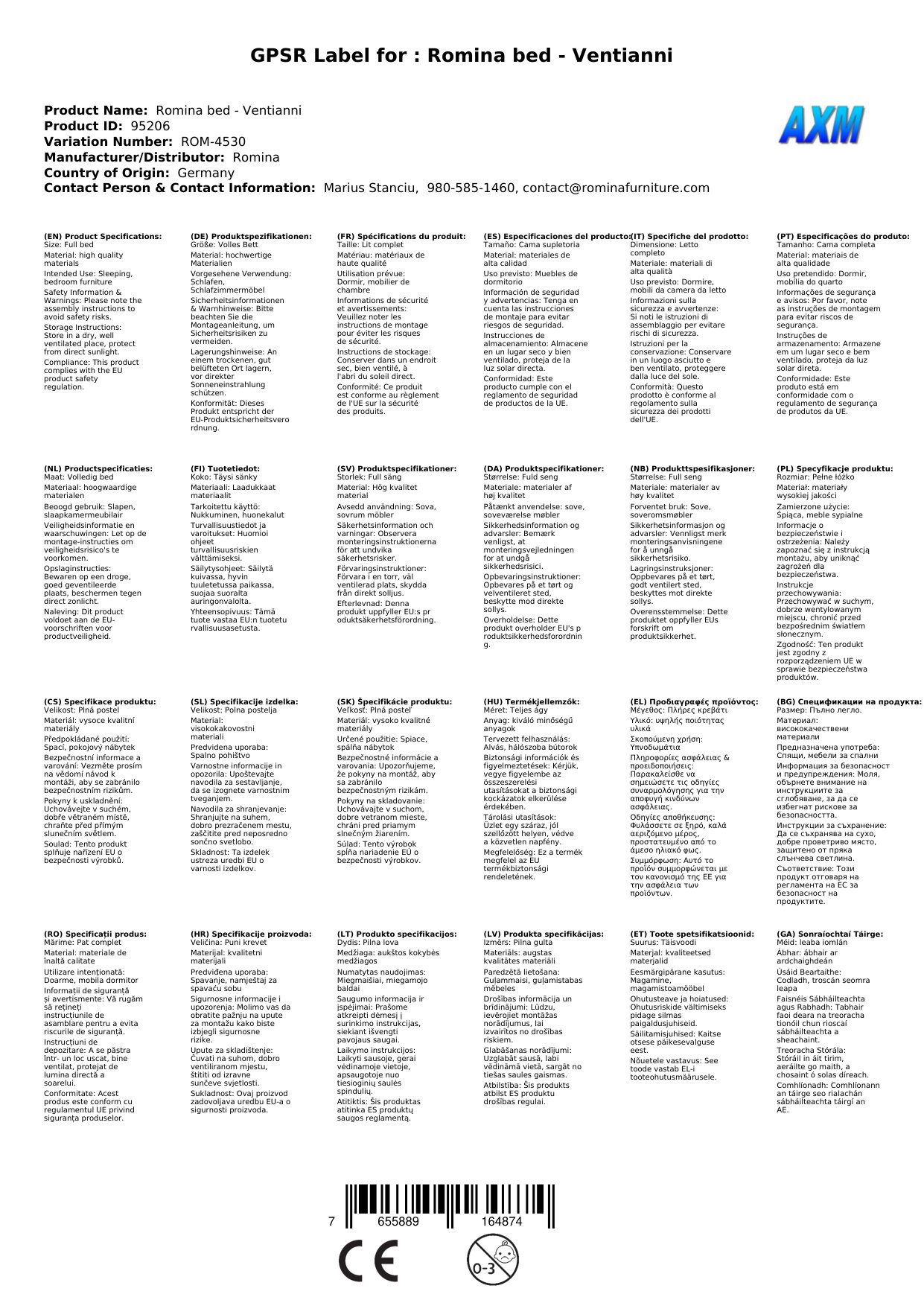 - Alle Romina-Produkte erfüllen US-Standards und CPSC-Anforderungen