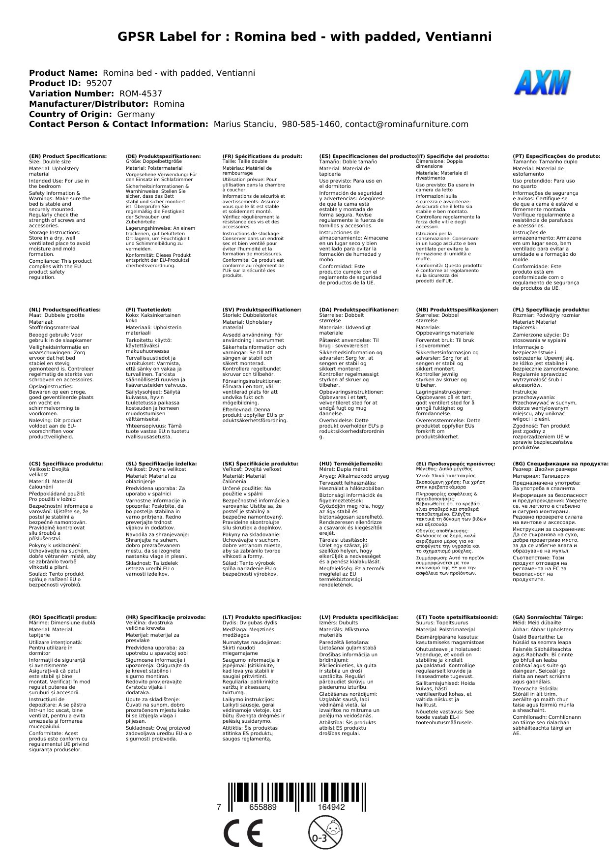Das Romina Bett - mit Gepolstert, Ventianni ist in den folgenden Maßen erhältlich: