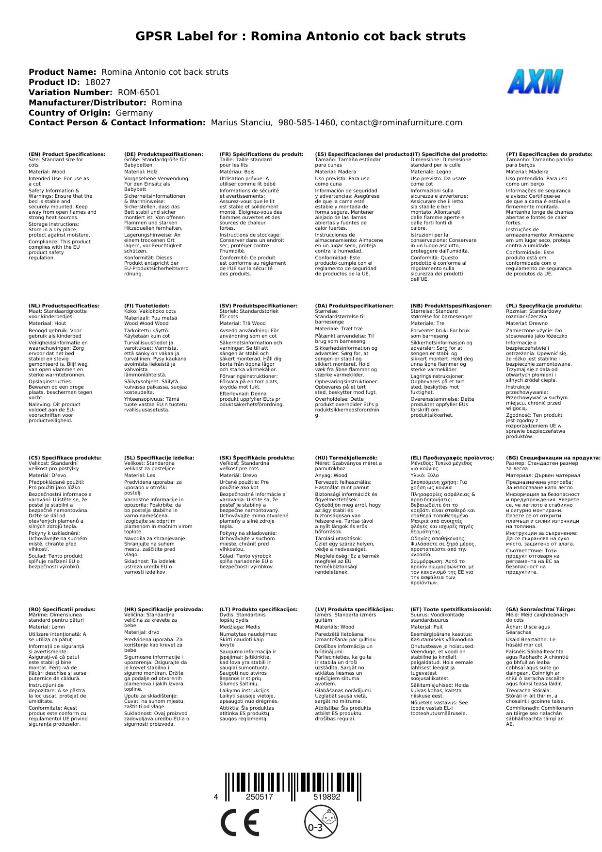 Romina Antonio Babybett Rückseite Streben