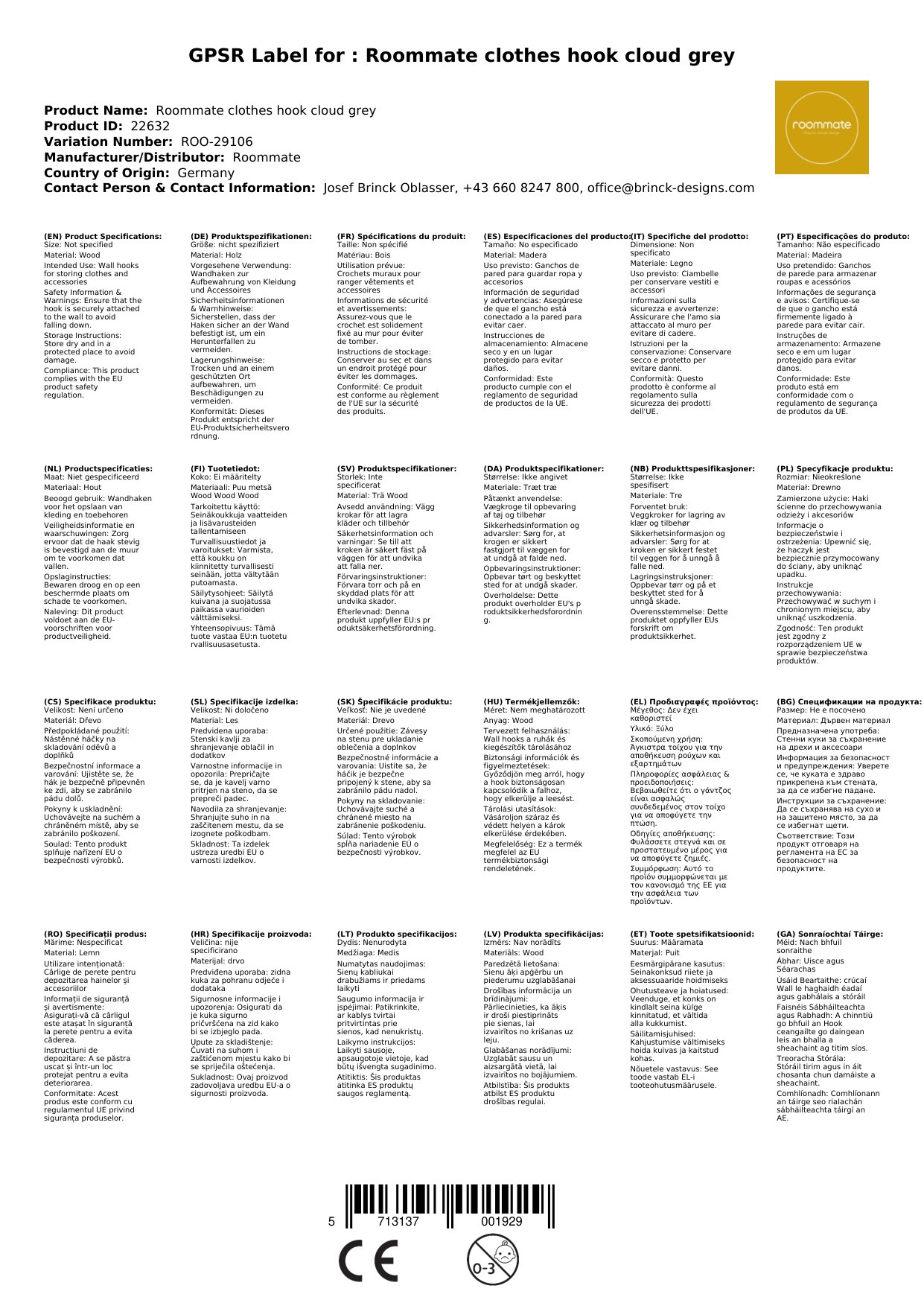 Stellen Sie eine Frage, um mehr über das Produkt zu erfahrenHier zeigen wir Ihnen einen hübschen Kleiderhaken von Roommate.