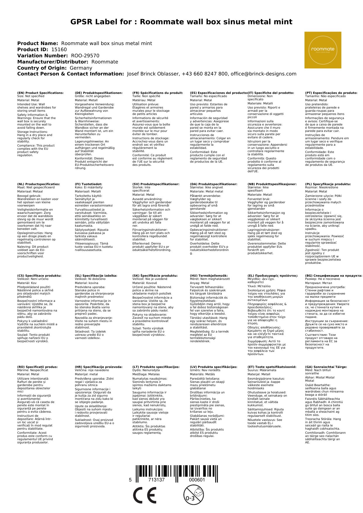 Roommate Wandbox Sinus Metall mint
