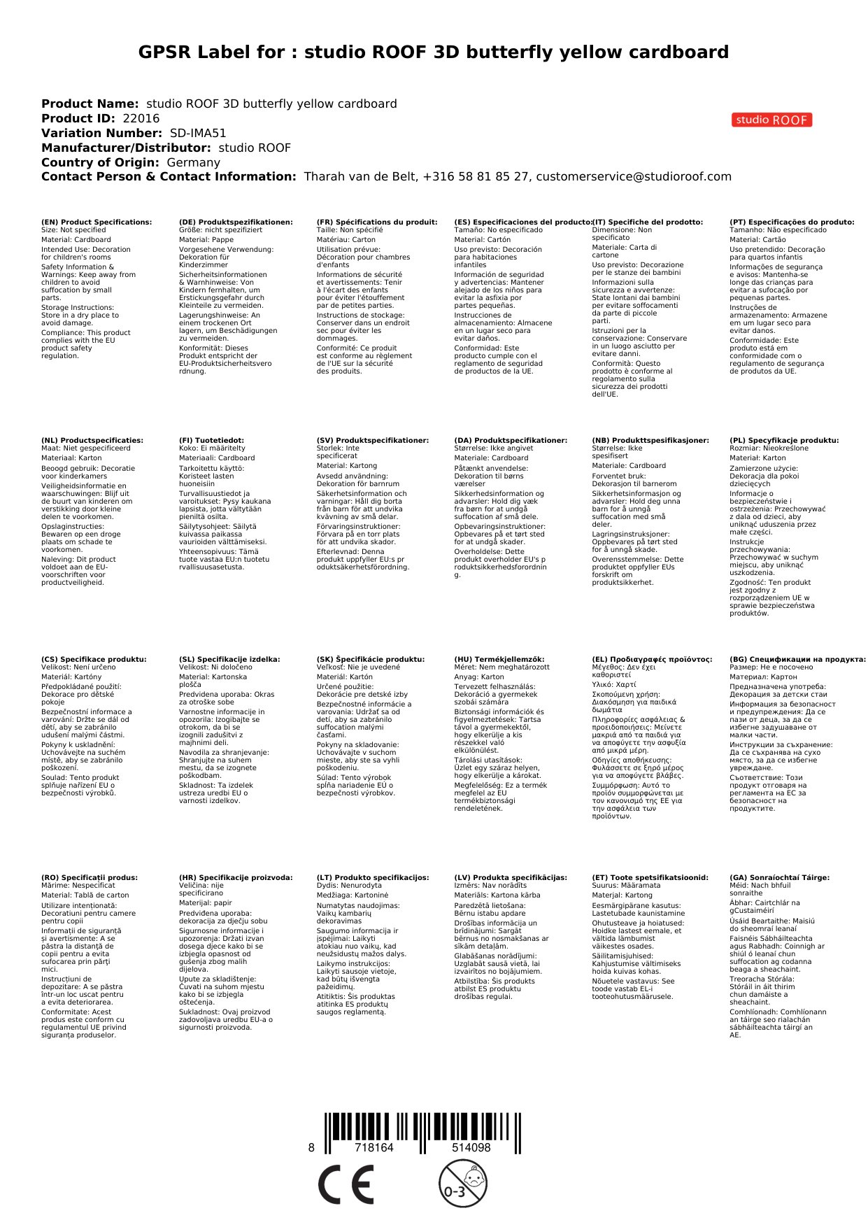 Stellen Sie eine Frage, um mehr über das Produkt zu erfahrenWir sind mega begeistert von diesem süssen Schmetterling aus Pappe. Ein tolles Objekt, das erst zusammengebaut wird und dann eine prima Dekoration in Kinderzimmer und anderswo abgibt. Und wir sind sicher, dass es nicht nur kleine Insektenforscher in den Bann zieht.