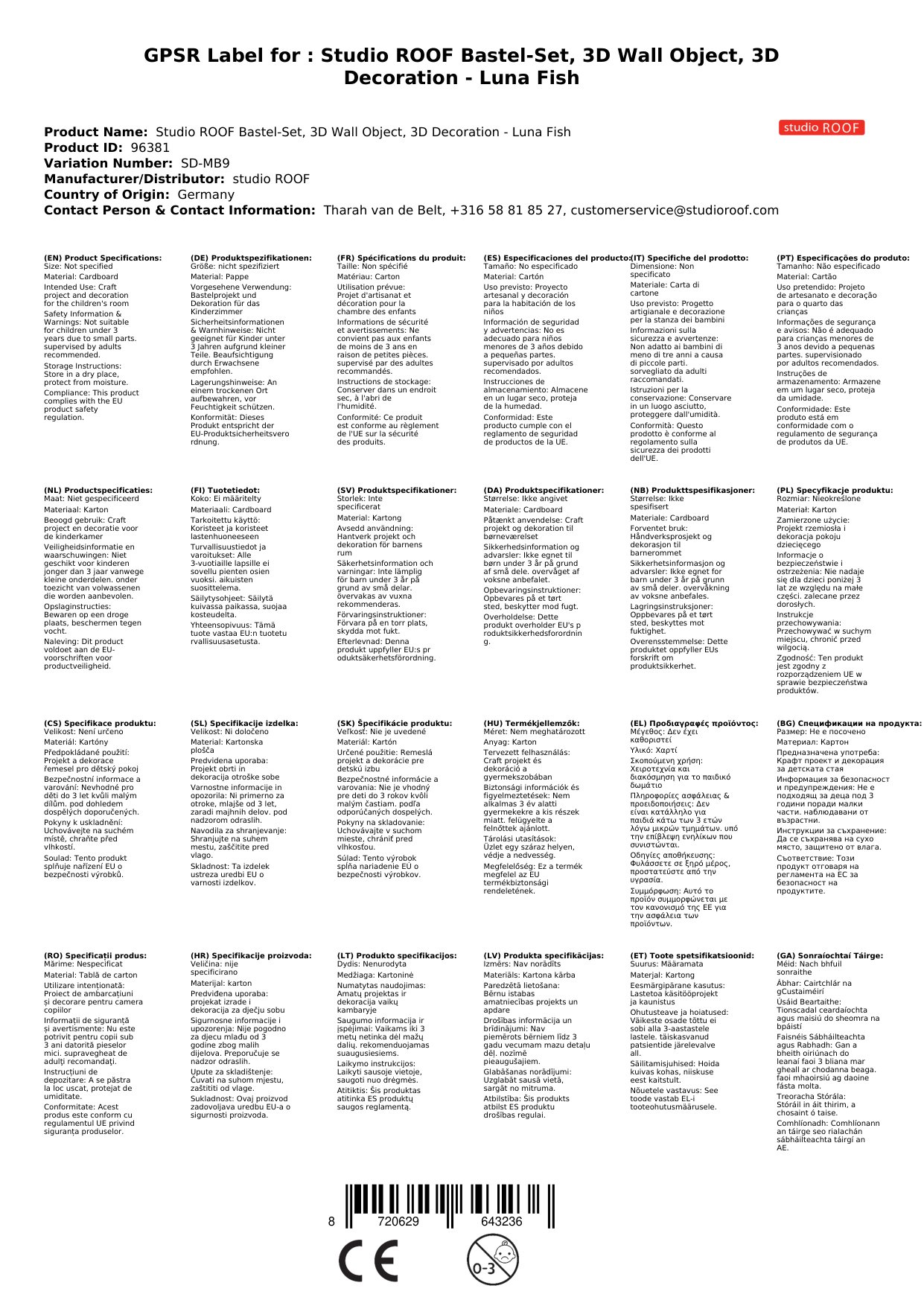 Das Luna Fisch Bastel-Set von Studio ROOF ist nicht nur eine fantasievolle und kreative Wanddekoration, sondern auch umweltbewusst, da es aus recyceltem Karton und pflanzlichen Tinten hergestellt wird. Mit der mitgelieferten Montageanleitung auf der Innenseite der Verpackung ist der Zusammenbau einfach und macht Spaß.