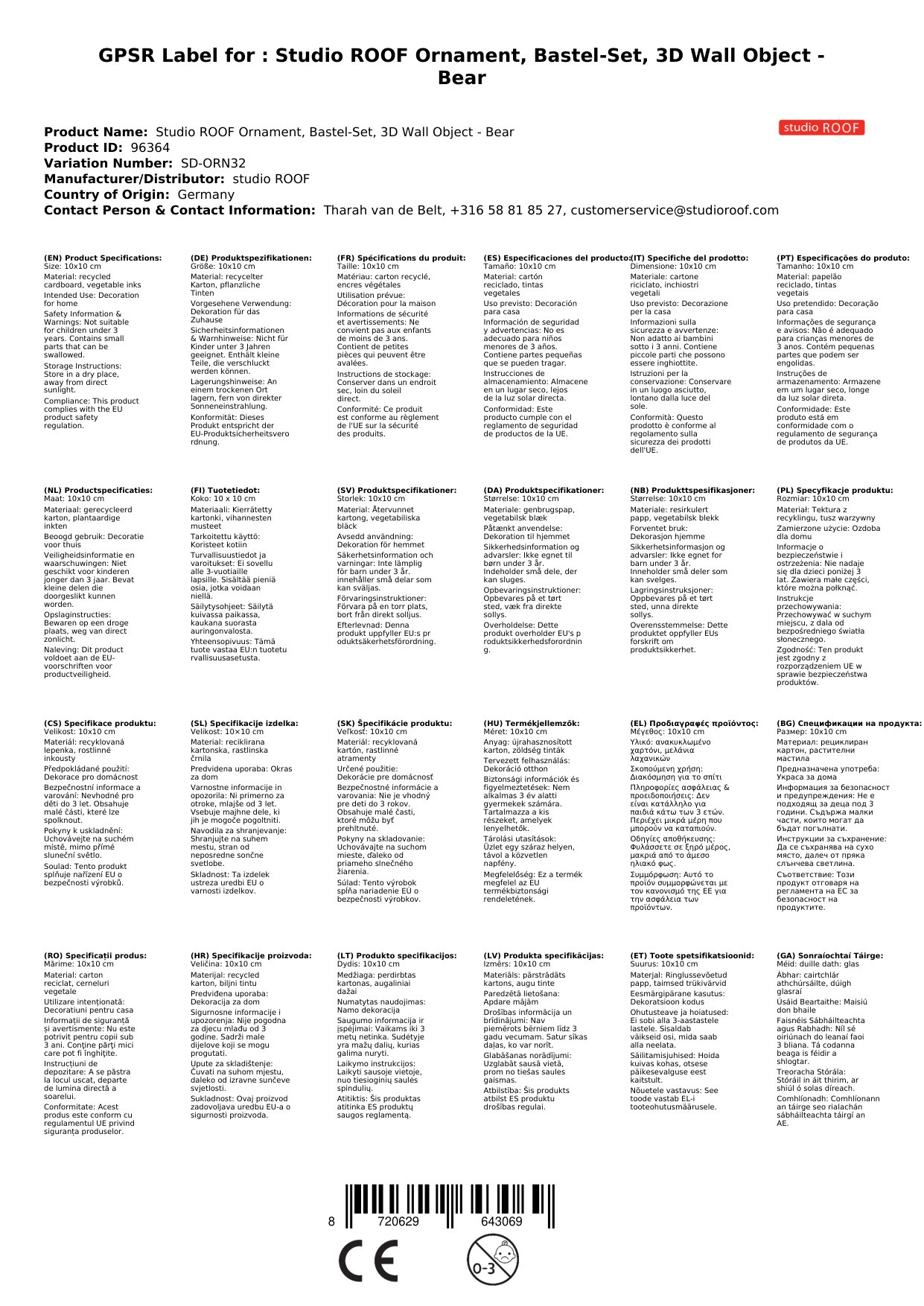 Stellen Sie eine Frage, um mehr über das Produkt zu erfahrenStudio ROOF Ornament, Bastel-Set, 3D Wandobjekt - Bär
