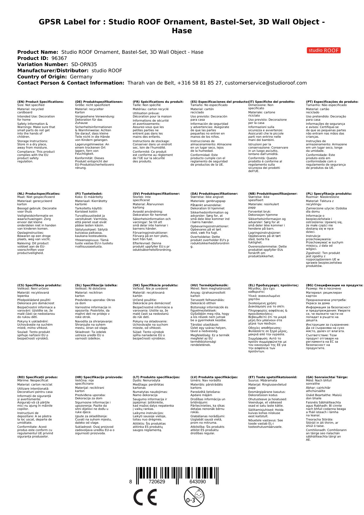 Stellen Sie eine Frage, um mehr über das Produkt zu erfahrenStudio ROOF Ornament, Bastel-Set, 3D Wandobjekt - Hase