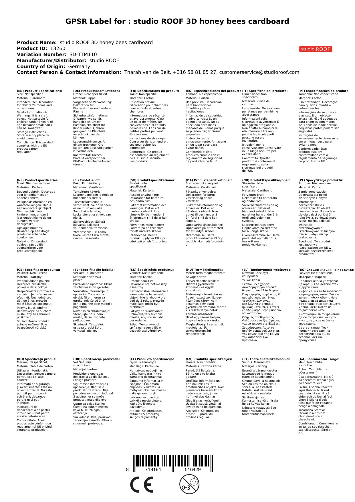 Das 3D Objekt kommt aus dem Hause studio ROOF. Das niederländische Label hat sich auf Dekoration und Spielzeug aus Pappe spezialisiert und besticht durch originelle und phantasievolle Figuren.