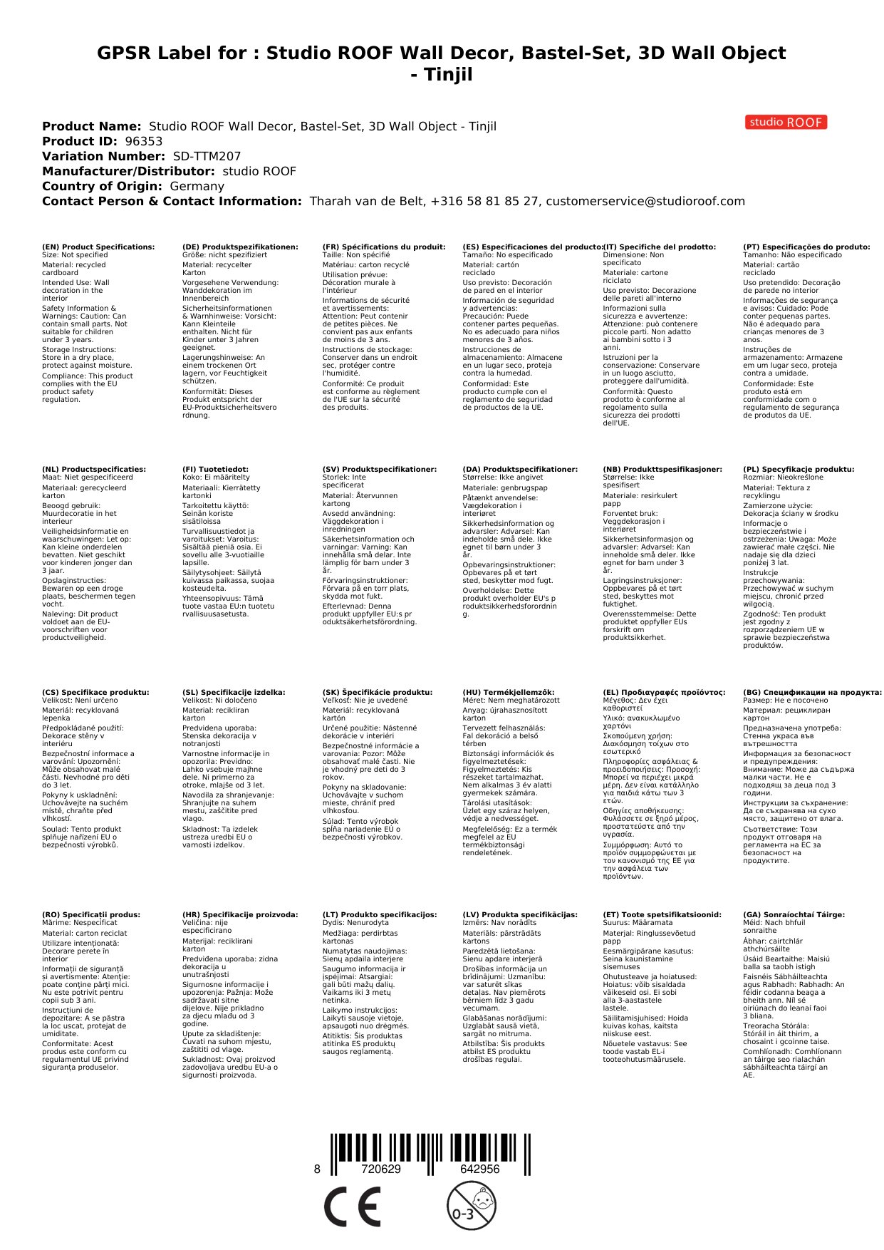 Stellen Sie eine Frage, um mehr über das Produkt zu erfahrenStudio ROOF Wanddeko, Bastel-Set, 3D Wandobjekt - Tinjil