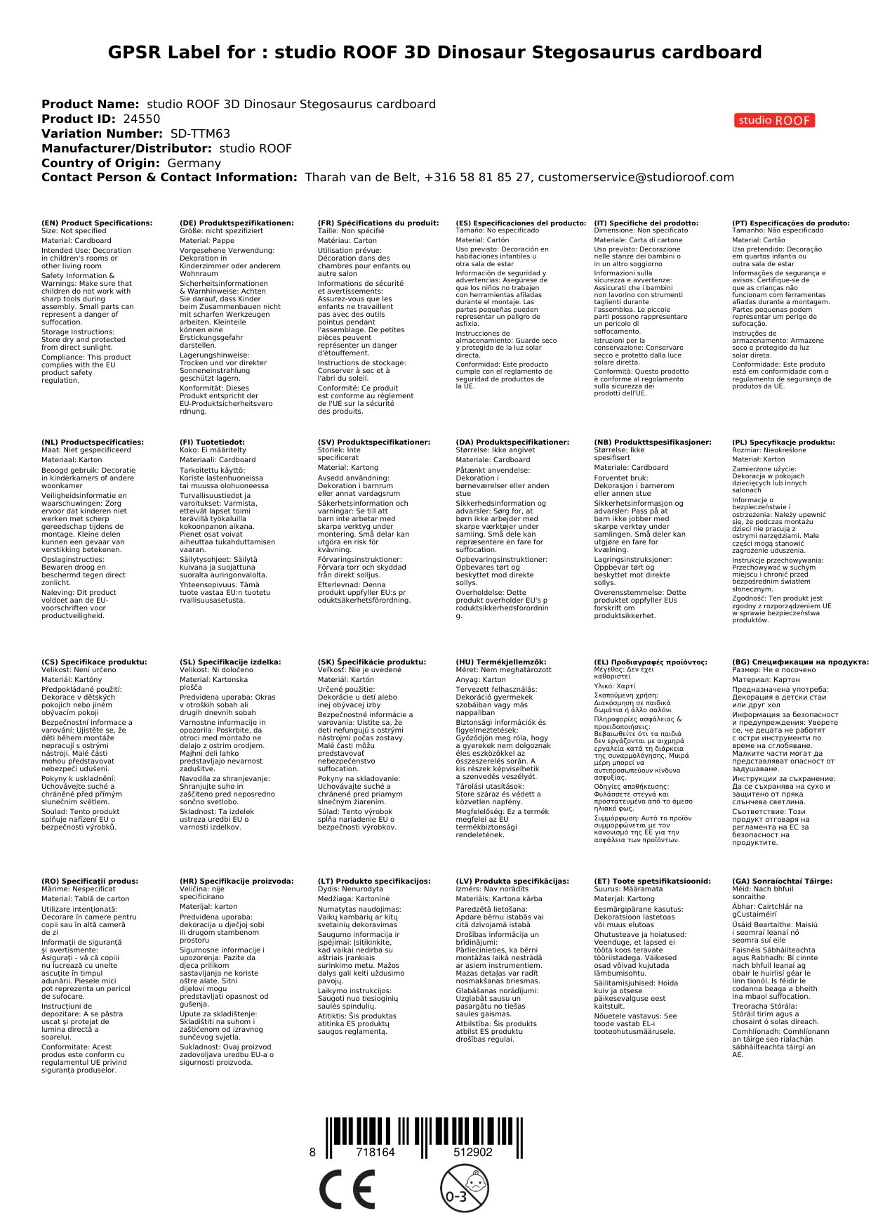 Das 3D Objekt kommt aus dem Hause studio ROOF. Das niederländische Label hat sich auf Dekoration und Spielzeug aus Pappe spezialisiert und besticht durch originelle und phantasievolle Figuren.