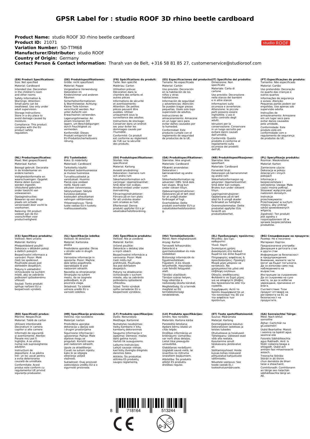 Das 3D Objekt kommt aus dem Hause studio ROOF. Das niederländische Label hat sich auf Dekoration und Spielzeug aus Pappe spezialisiert und besticht durch originelle und phantasievolle Figuren.