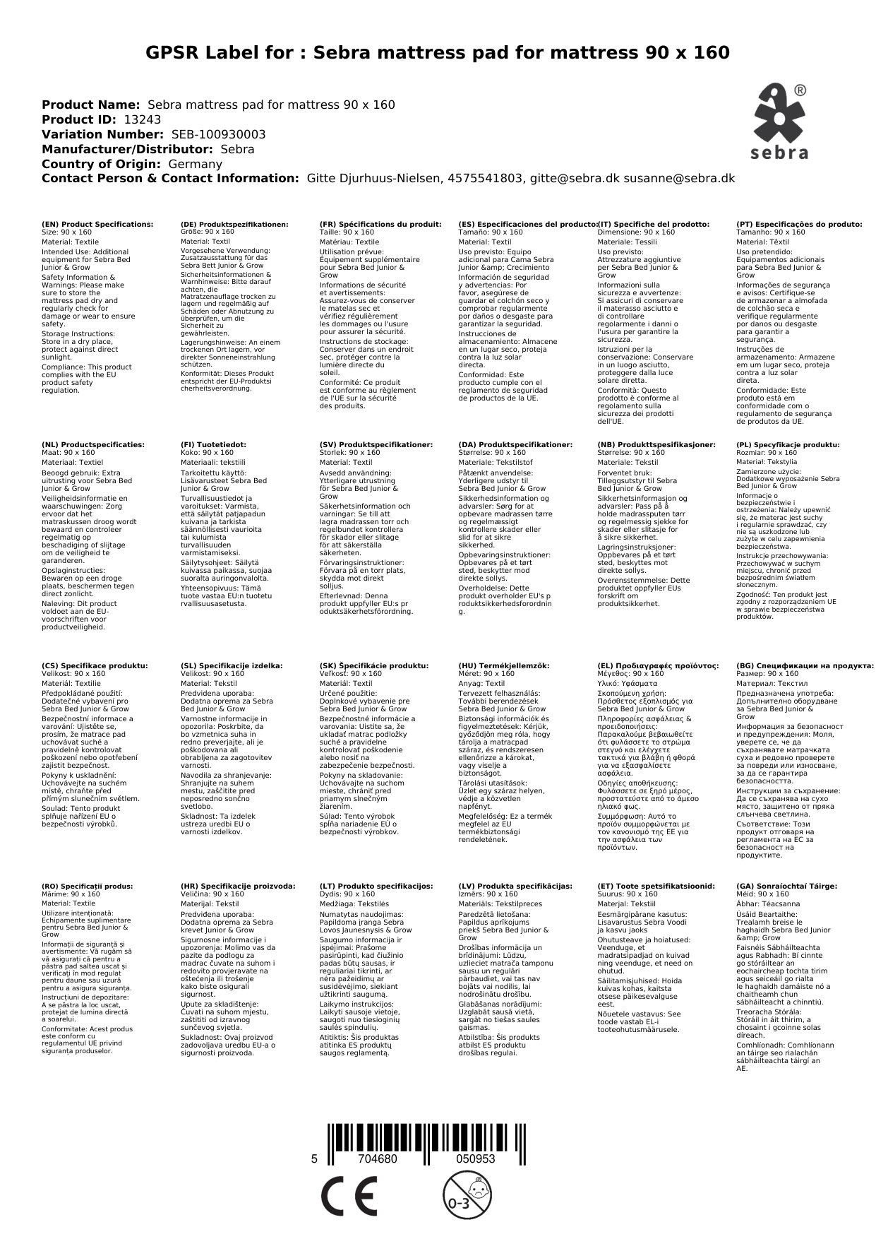 Hier präsentieren wir Ihnen eine Matratzenauflage von Sebra aus Dänemark. Sie wird zwischen Matratze und Bettlaken platziert und bietet so der passenden Matratze für das Sebra Bett Junior & Grow perfekten Schutz. Der elastische Gummizug fixiert die Auflage an allen vier Ecken und sorgt dafür, dass nichts verrutschen kann.