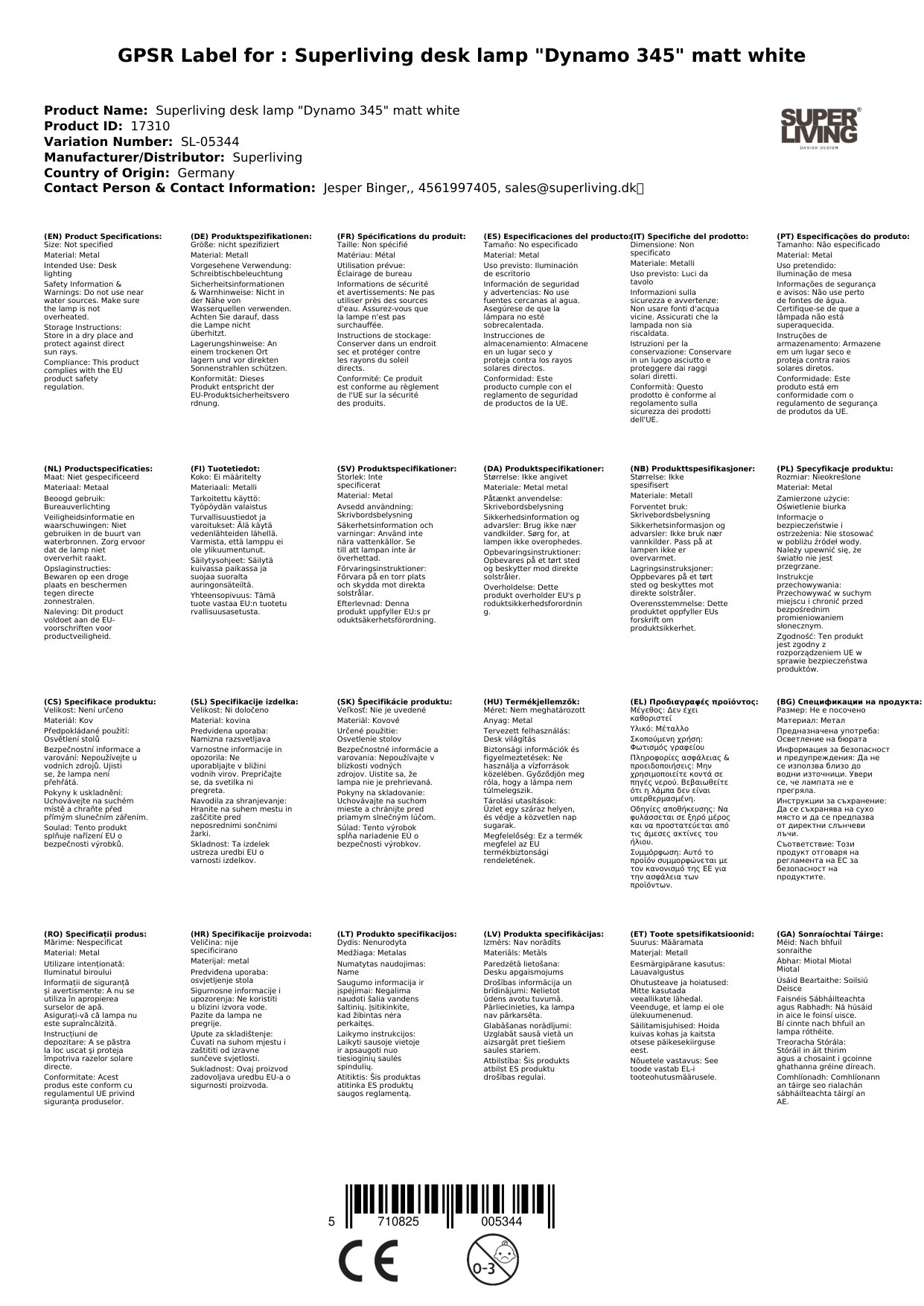Superliving Schreibtischlampe "Dynamo 345" matt weiss