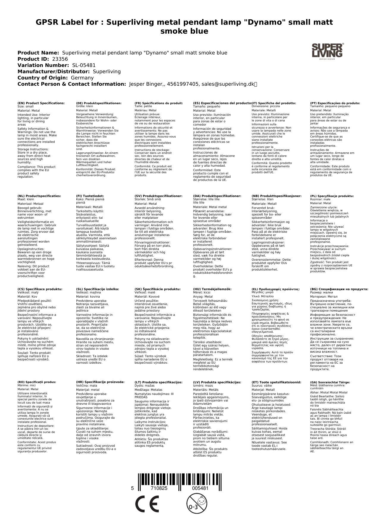 Superliving Metall Pendellampe "Dynamo" klein matt rauchblau