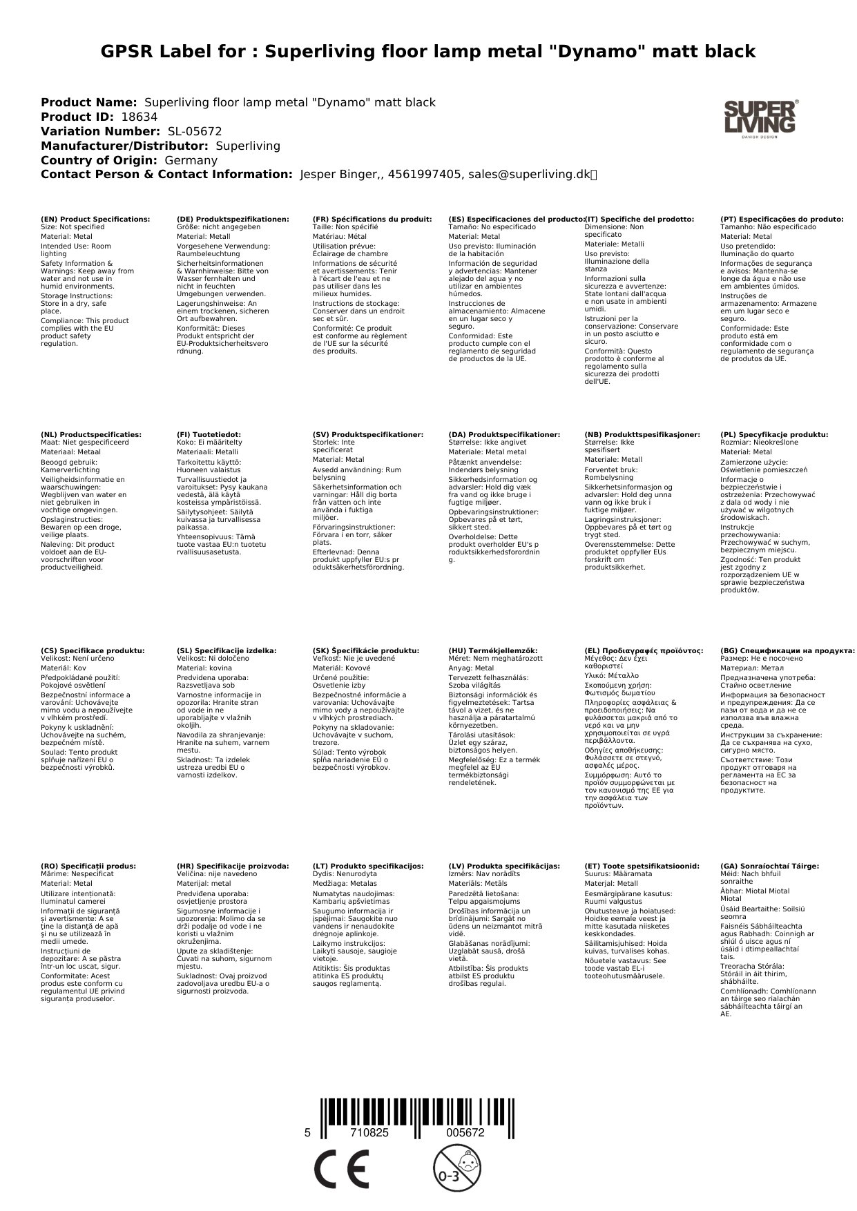 Superliving Stehlampe Metall "Dynamo" matt schwarz