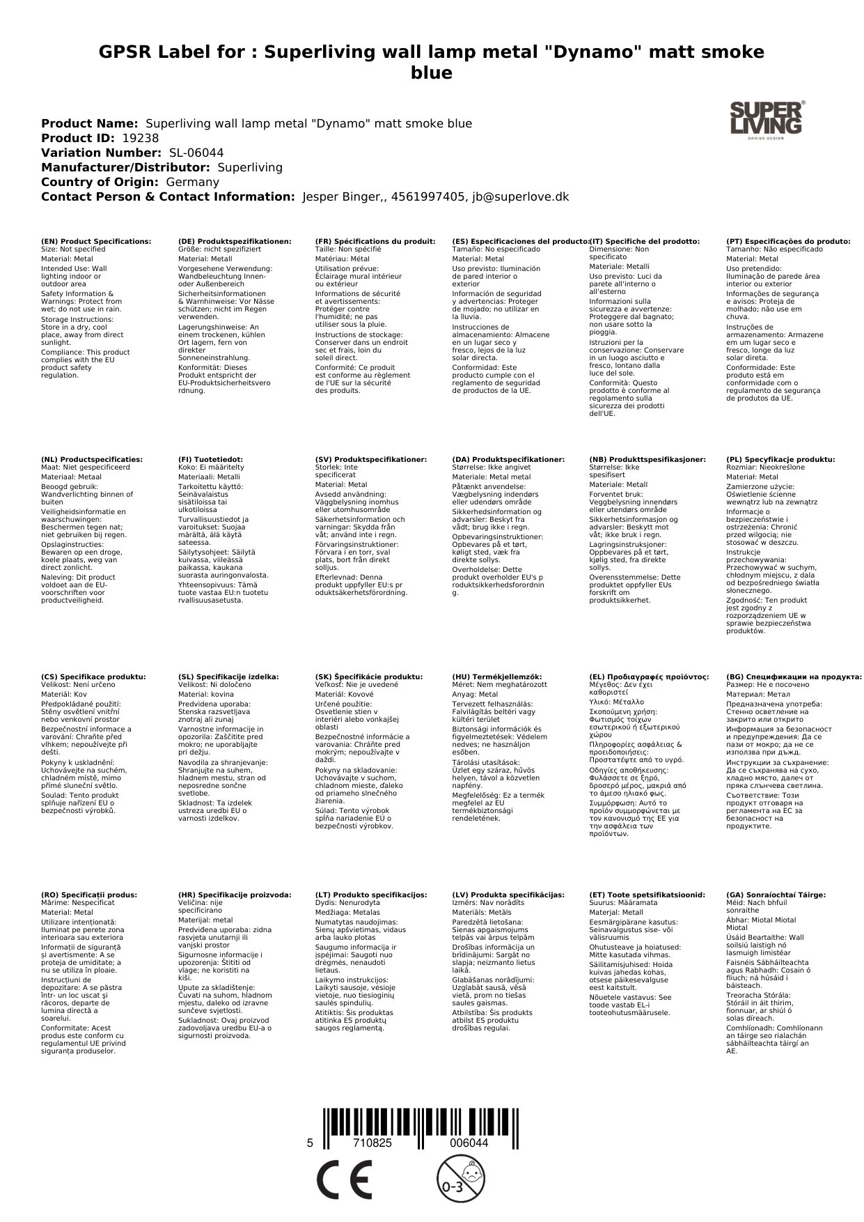 Superliving Wandlampe Metall "Dynamo" matt rauchblau