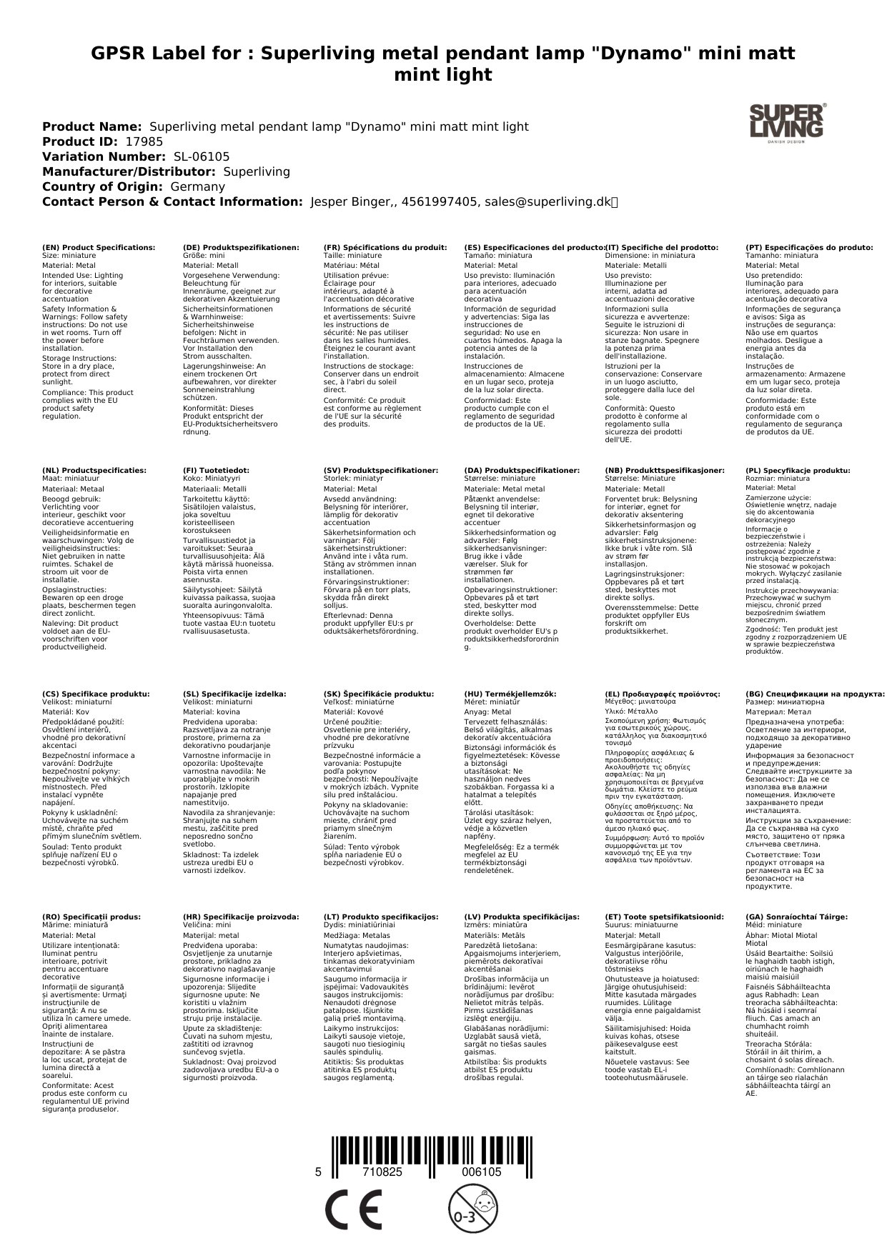 Superliving Metall Pendellampe "Dynamo" mini matt mint hell