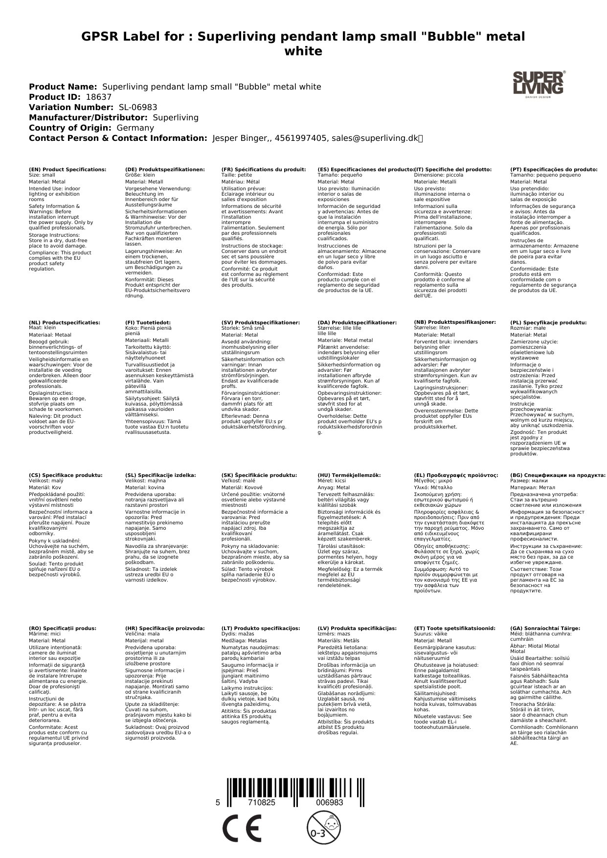 Superliving Pendellampe klein "Bubble" Metall weiss