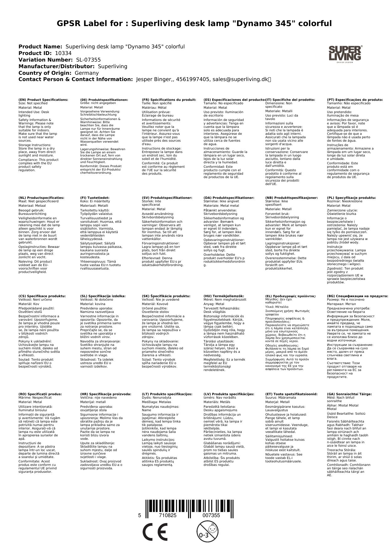 Superliving Schreibtischlampe "Dynamo 345" bunt