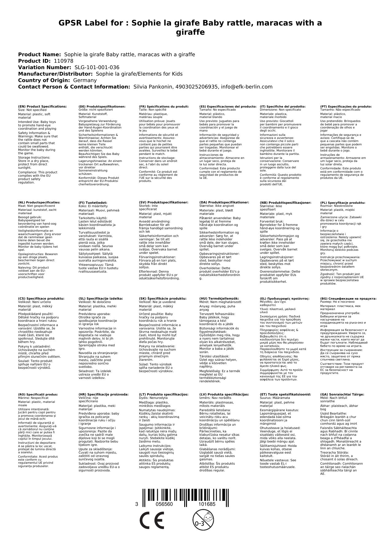 Diese Rassel ist für Babys ab 3 Monaten geeignet und hat eine Größe von ca. 6 x 6 x 17 cm. Bitte beachten Sie, dass eine Hochtemperatursterilisierung nicht möglich ist und dass die Rassel nicht in der Spülmaschine gereinigt werden darf. Verwenden Sie stattdessen ein feuchtes Tuch zur Reinigung.