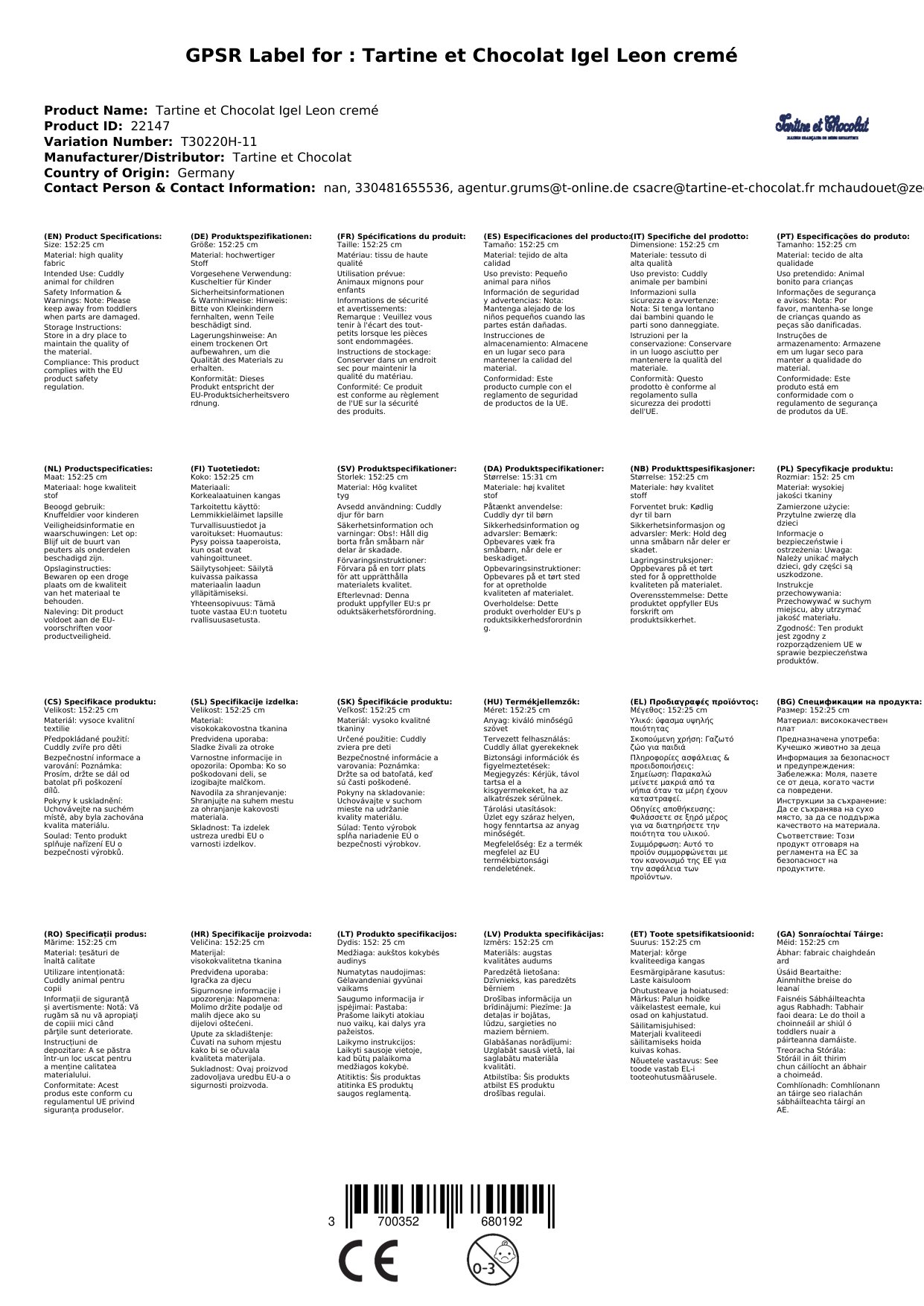 Das Kuscheltier wird für Sie bei Tartine et Chocolat in Paris bestellt, falls wir es nicht lagernd haben. Die aktuelle Lieferzeit sehen Sie weiter oben. Sobald es sich zu Ihnen auf die Reise macht, erhalten Sie von uns eine Benachrichtigung per Mail. Natürlich ist dieser auch ein Link zur Nachverfolgung Ihrer Sendung enthalten.