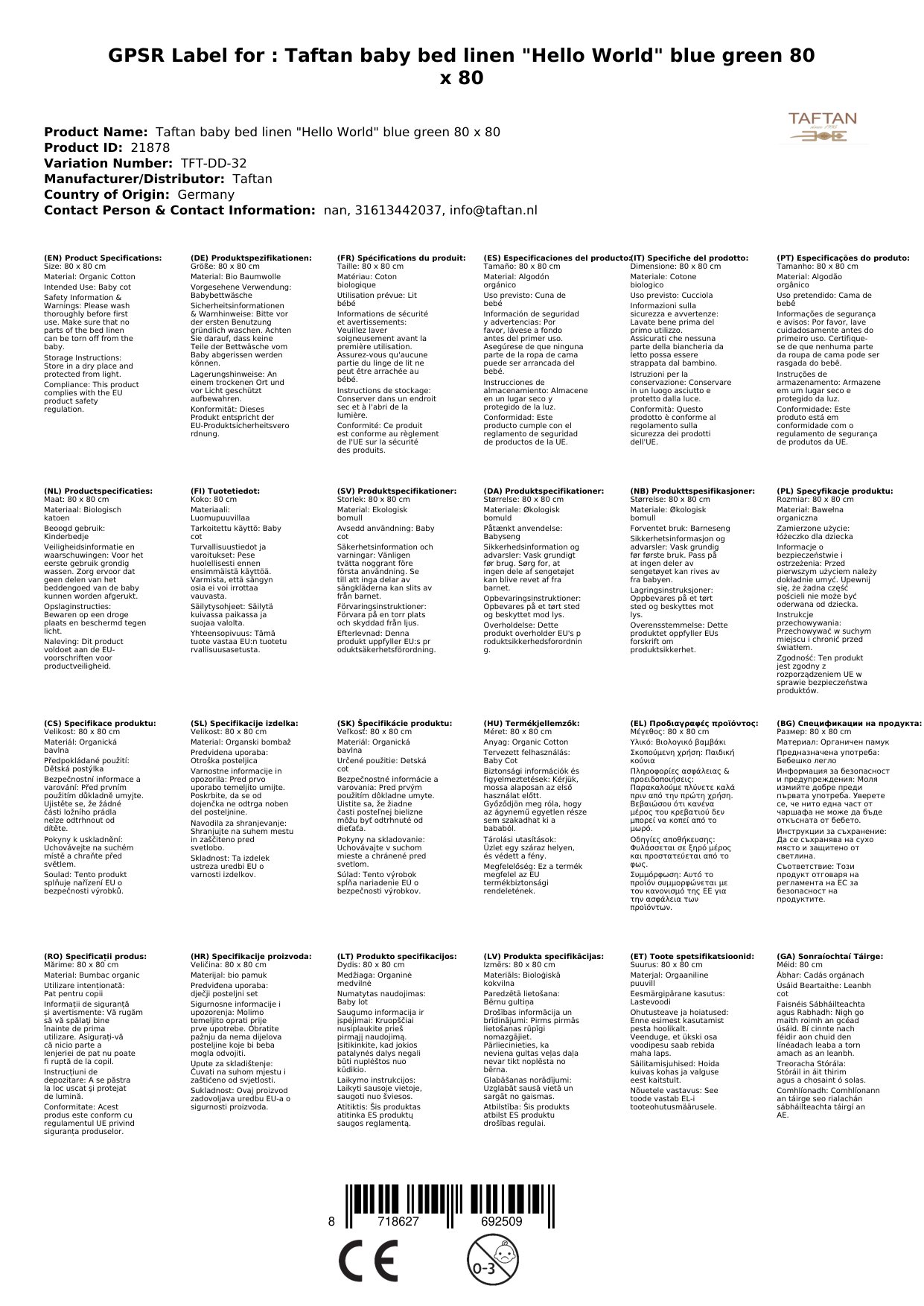 Stellen Sie eine Frage, um mehr über das Produkt zu erfahrenHier zeigen wir Ihnen ein hübsche Babybettwäsche von Taftan aus der Kollektion 'Hello World' .