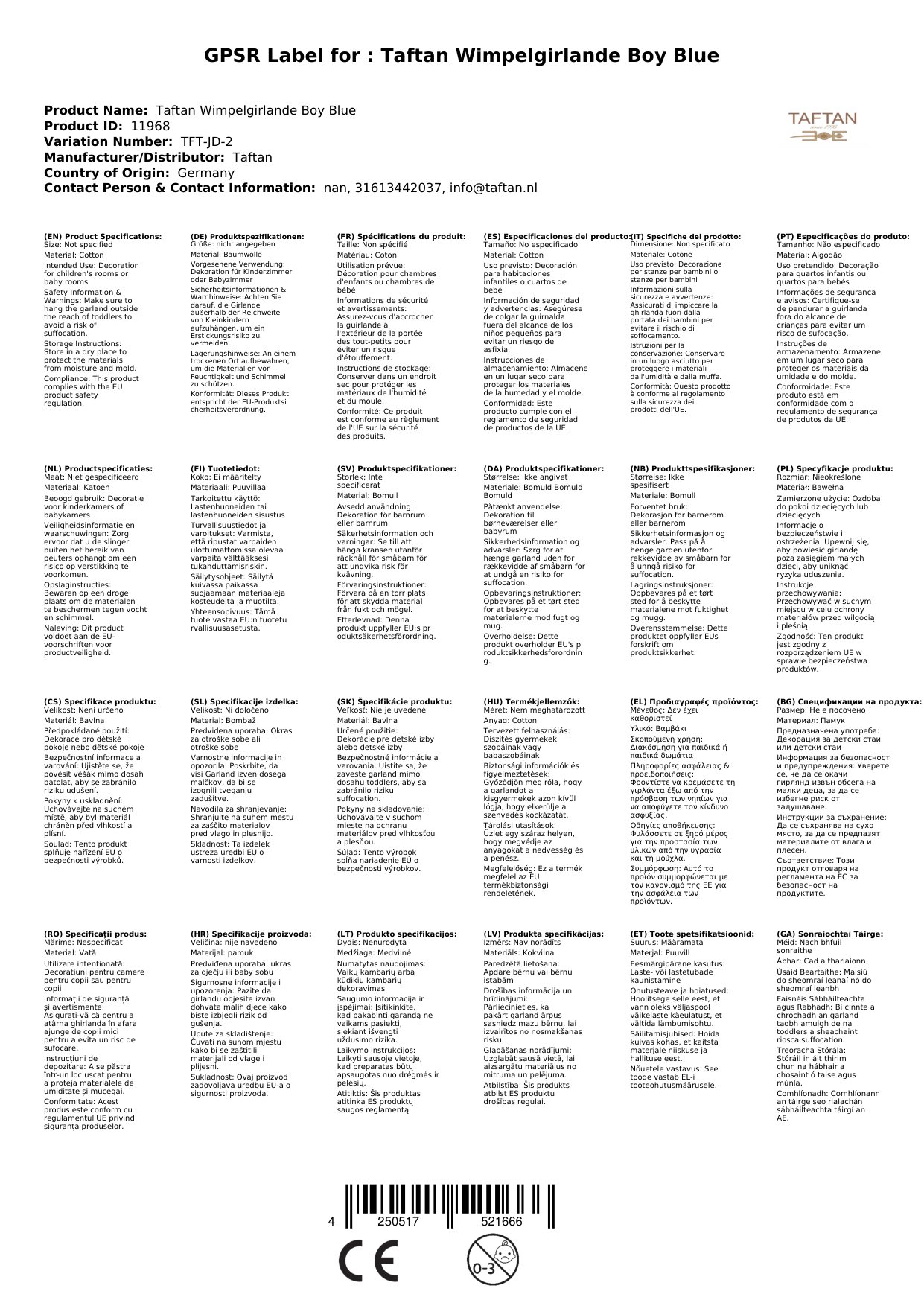 Stellen Sie eine Frage, um mehr über das Produkt zu erfahrenDiese Wimpelkette von Taftan ist eine hübsche Idee, um das Kinderzimmer oder Babyzimmer zu dekorieren.