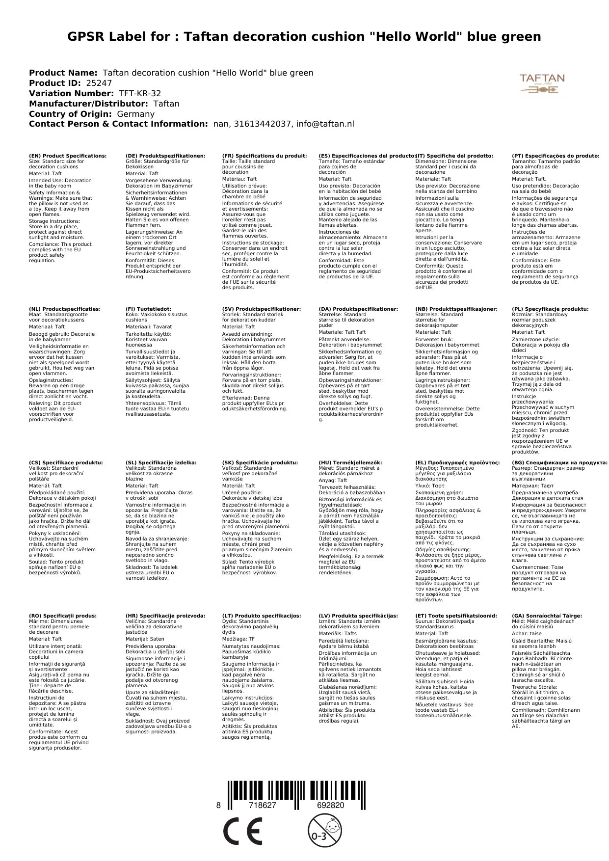 Stellen Sie eine Frage, um mehr über das Produkt zu erfahrenHier zeigen wir Ihnen ein hübsches Kissen von Taftan aus der Kollektion 'Hello World' .