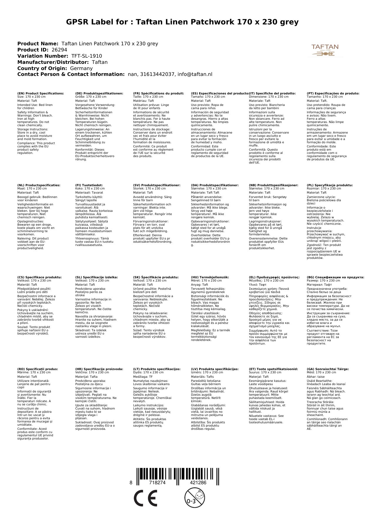Taftan Bettwäsche Patchwork 170 x 230 grau