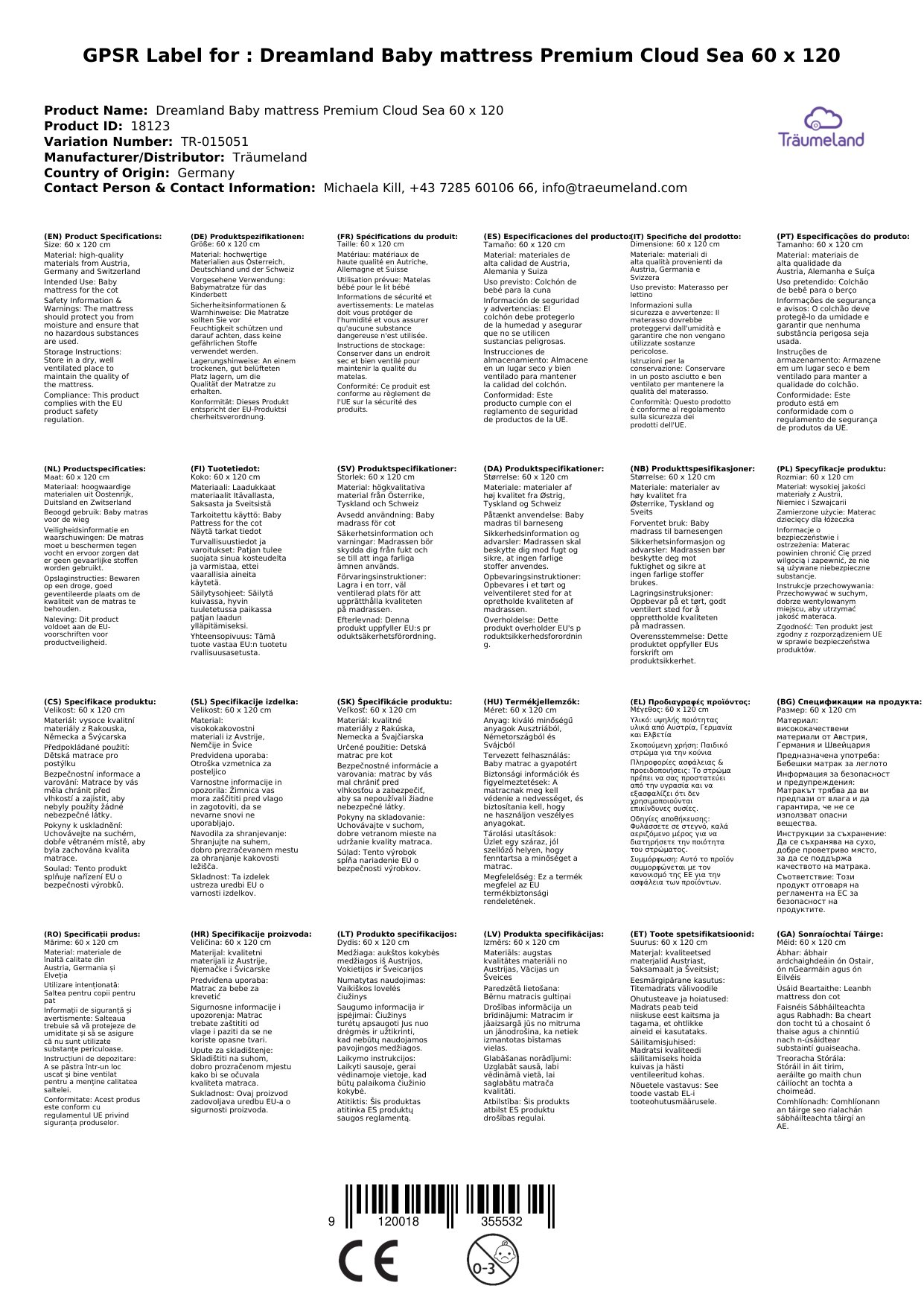 Träumeland Babymatratze Premium Wolkenmeer 60 x 120