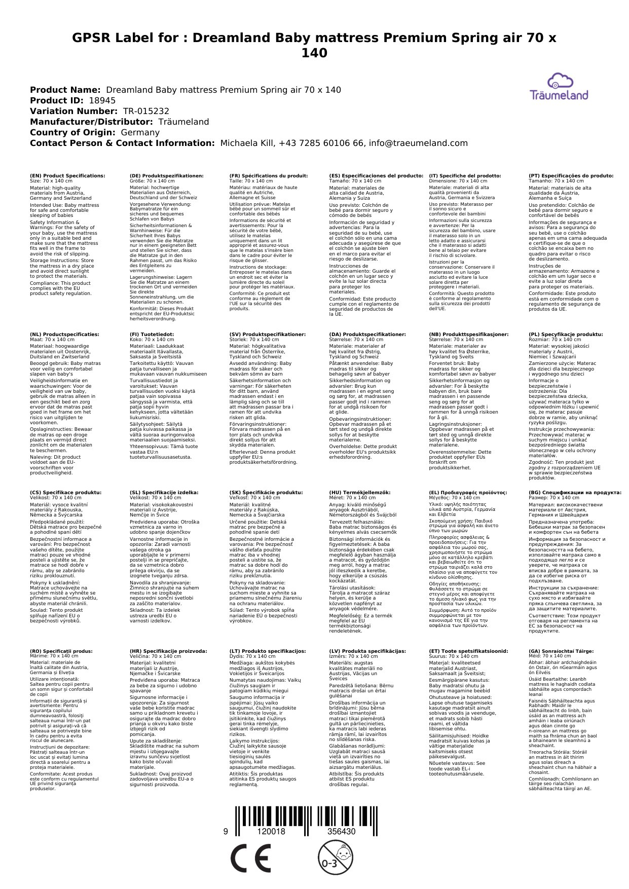 Auf mögliche alternative Größen verweisen wir weiter unten. Alle Produkte von Träumeland auf einen Blick sehen Sie, wenn Sie auf den Herstelllerlink klicken.