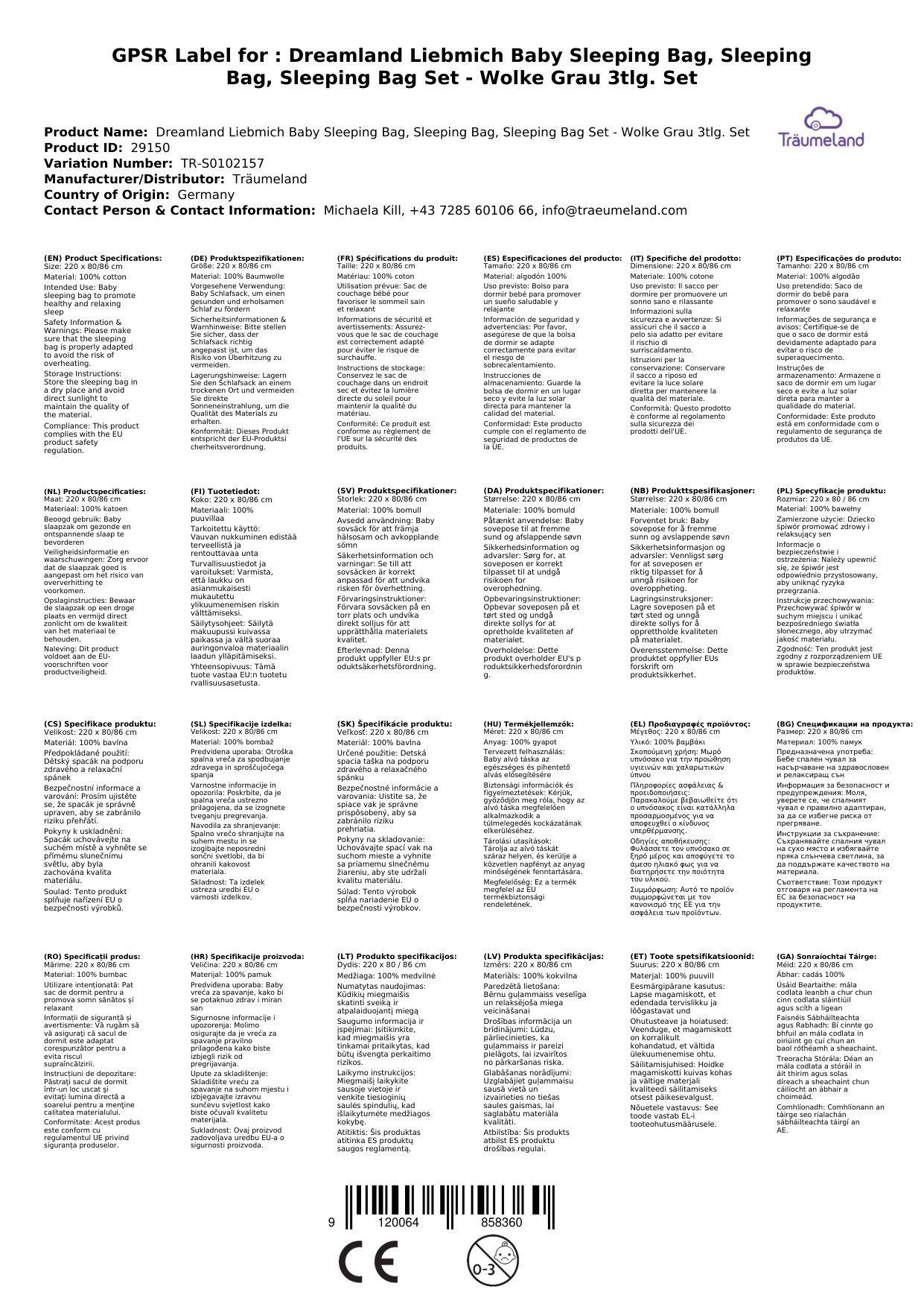 Stellen Sie eine Frage, um mehr über das Produkt zu erfahrenTräumeland Liebmich Baby Schlafsack, Kinderschlafsack, Schlummersack, Innenschlafsack - Wolke Grau