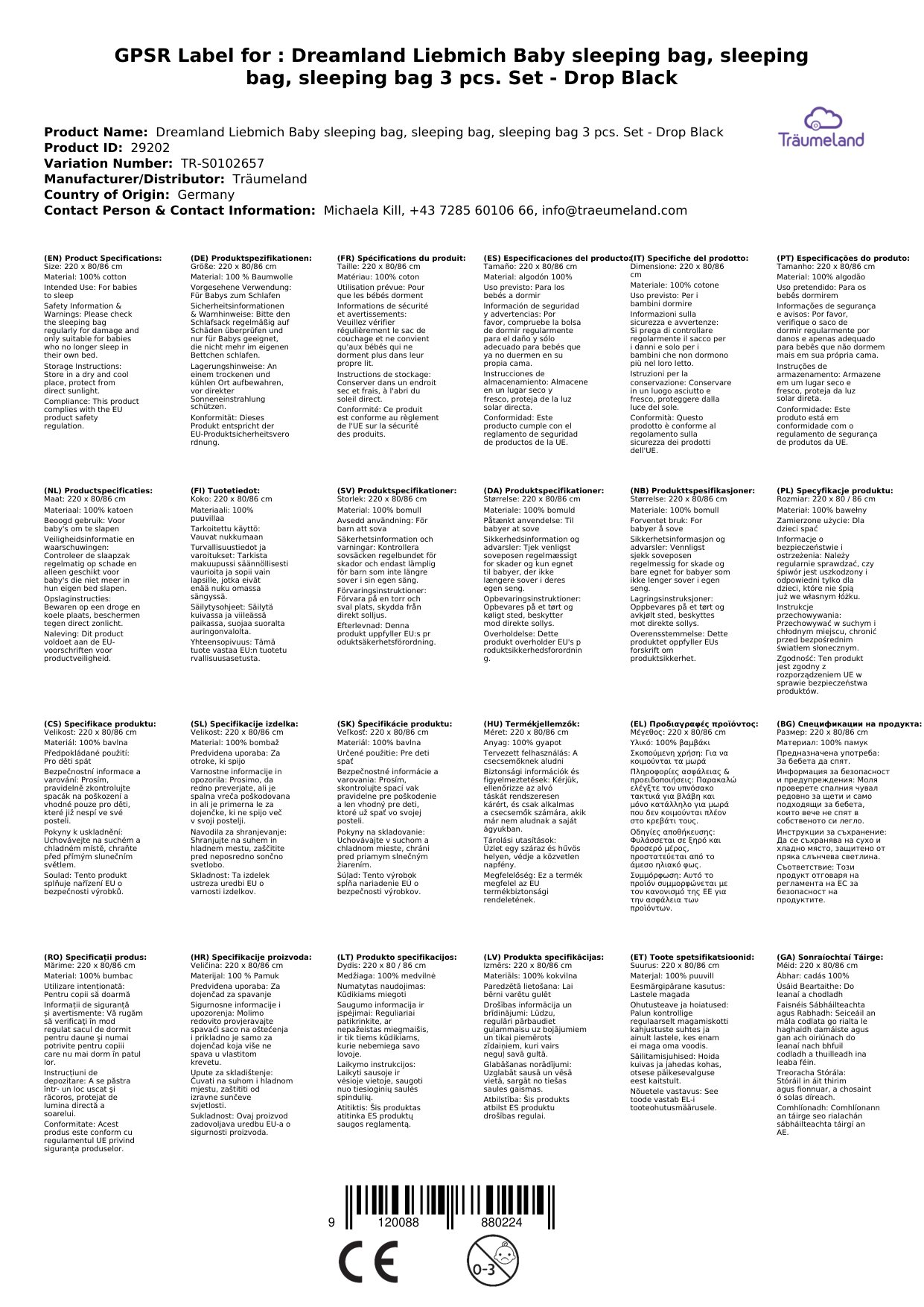Stellen Sie eine Frage, um mehr über das Produkt zu erfahrenTräumeland Liebmich Baby Schlafsack, Kinderschlafsack, Schlummersack, Innenschlafsack Set - Tropfen Schwarz