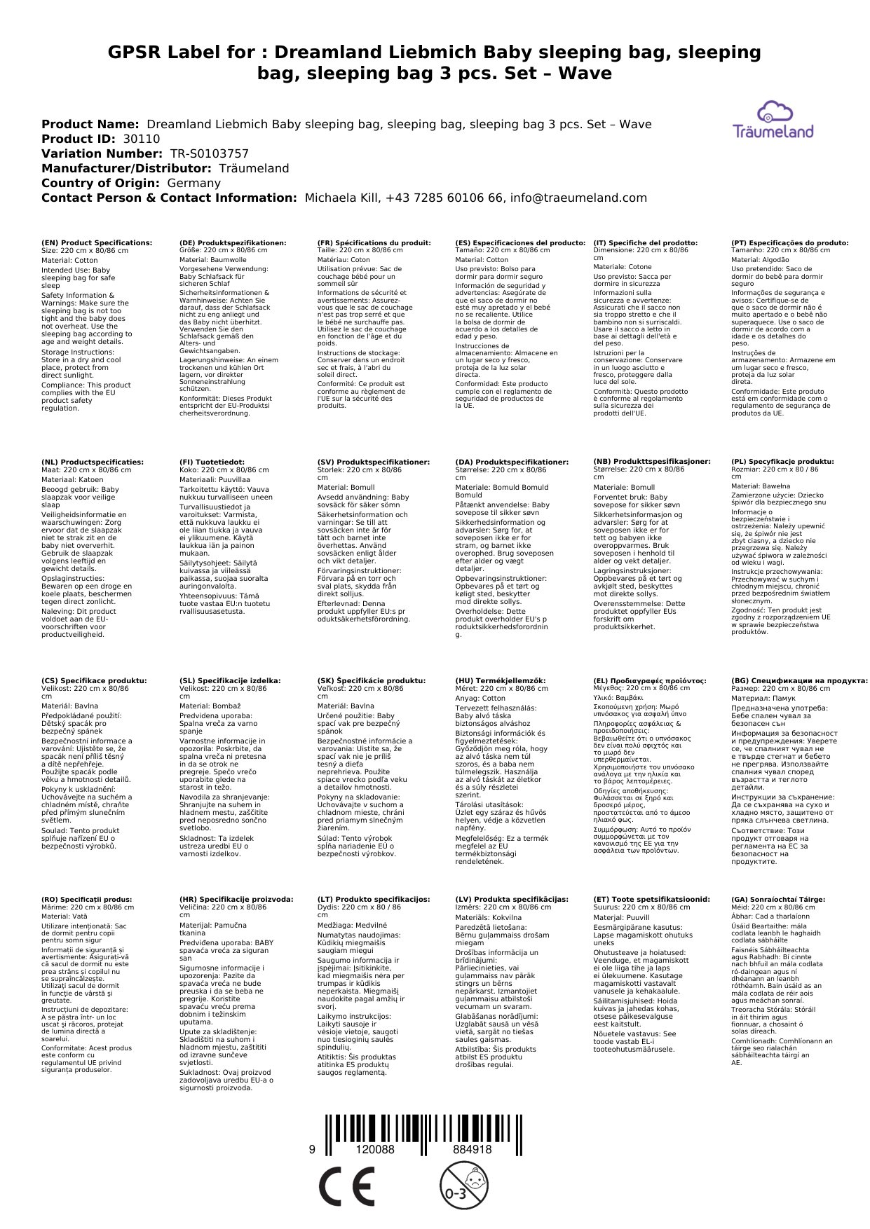 Stellen Sie eine Frage, um mehr über das Produkt zu erfahrenTräumeland Liebmich Baby Schlafsack, Kinderschlafsack, Schlummersack, Innenschlafsack Set – Wellenmeer