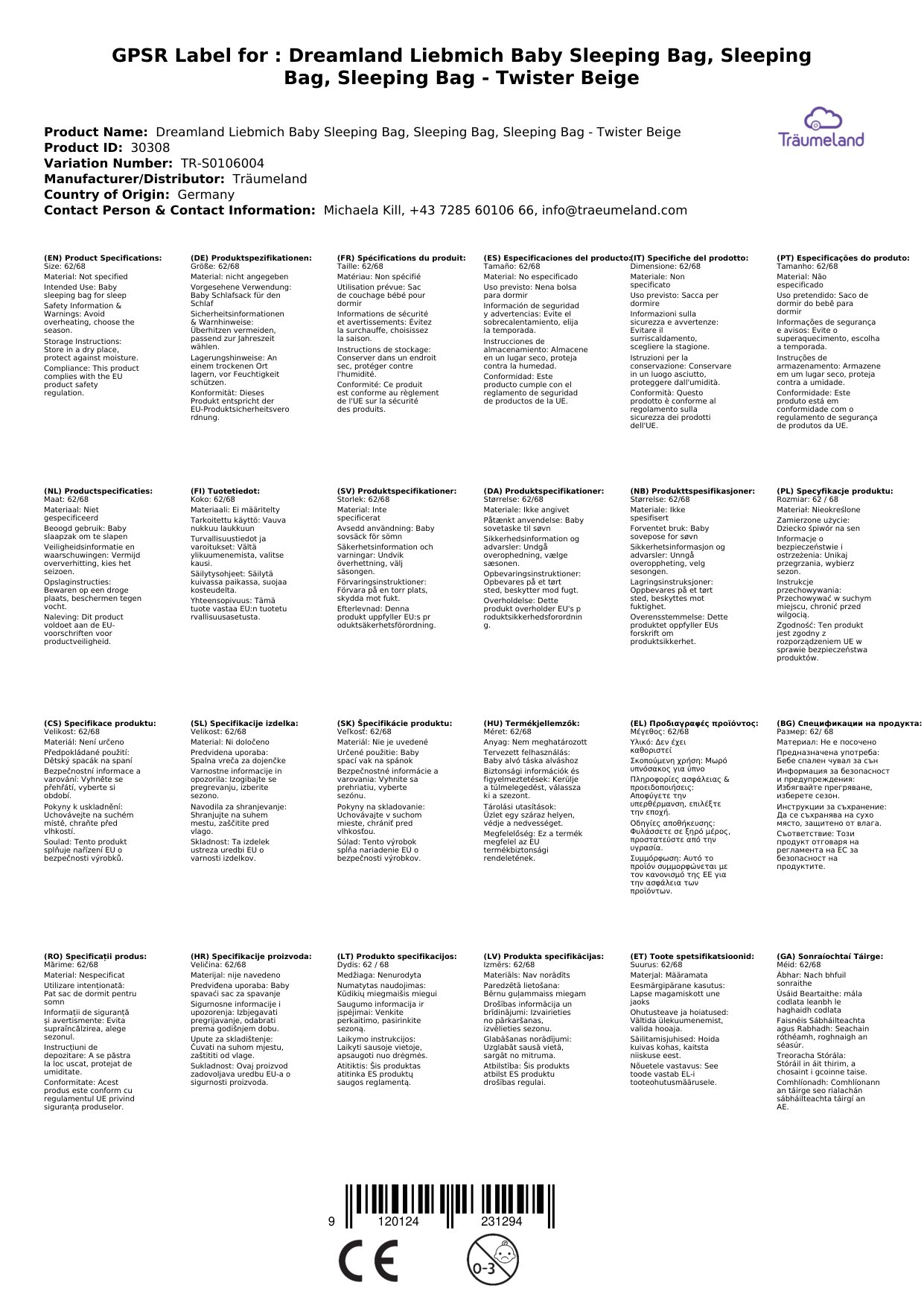 Stellen Sie eine Frage, um mehr über das Produkt zu erfahrenTräumeland Liebmich Baby Schlafsack, Kinderschlafsack, Schlummersack, Innenschlafsack - Twister Beige