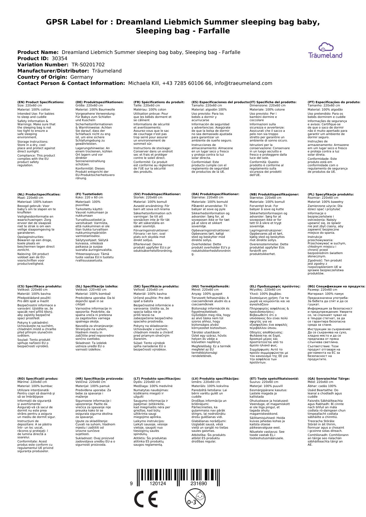 Stellen Sie eine Frage, um mehr über das Produkt zu erfahrenTräumeland Liebmich Sommerschlafsack baby, Schlummersack - Farfalle